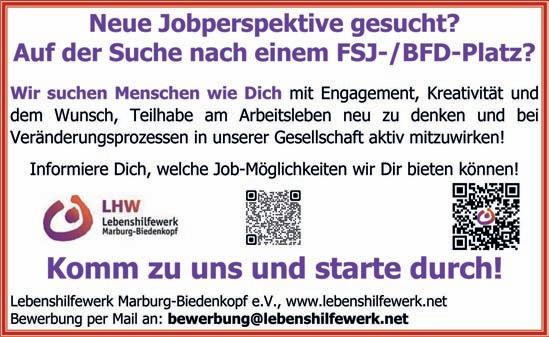 ● Weiterbildung „Wildnispädagogik“. Start: 07.09.2023. Infos: www.natur-wildnisschule.de/marburg. (gewerbl.)