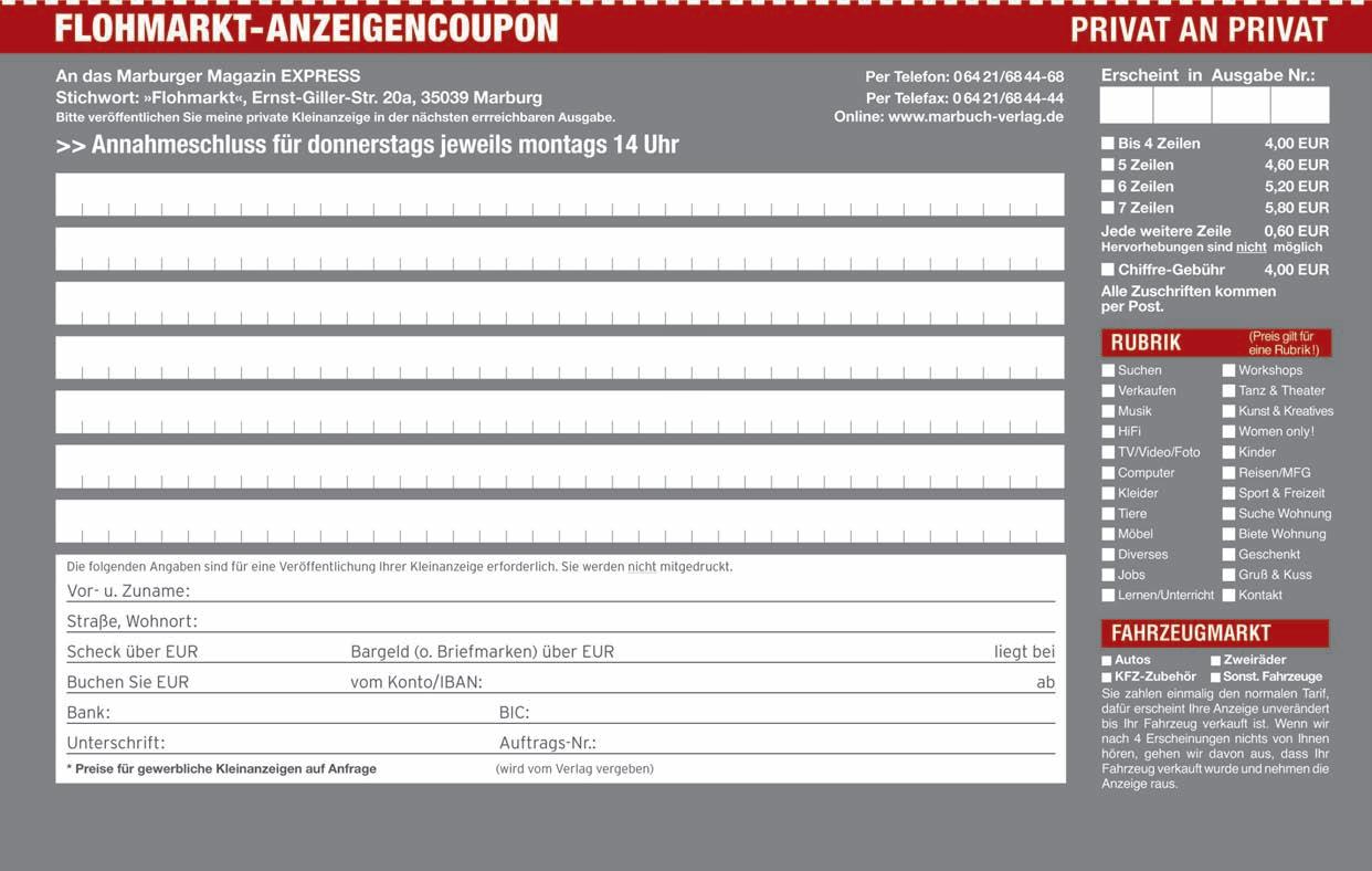 Kleinanzeigen annahme: Telefon 06421-684468 (Mo