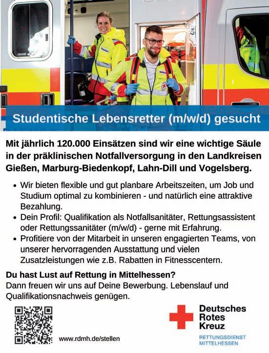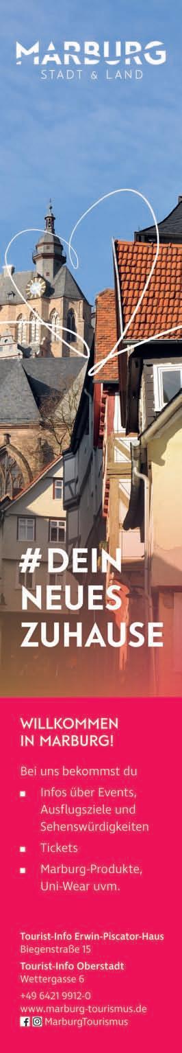 42/22 21.10. – 27.10.22 40. Jg. www.marbuch-verlag.de Kostenlos Semesterstart Special Filme für Gerechtigkeit Globale Mittelhessen Grenzgänger Songful in der Lutherkirche In die Ferne Studieren im Ausland
