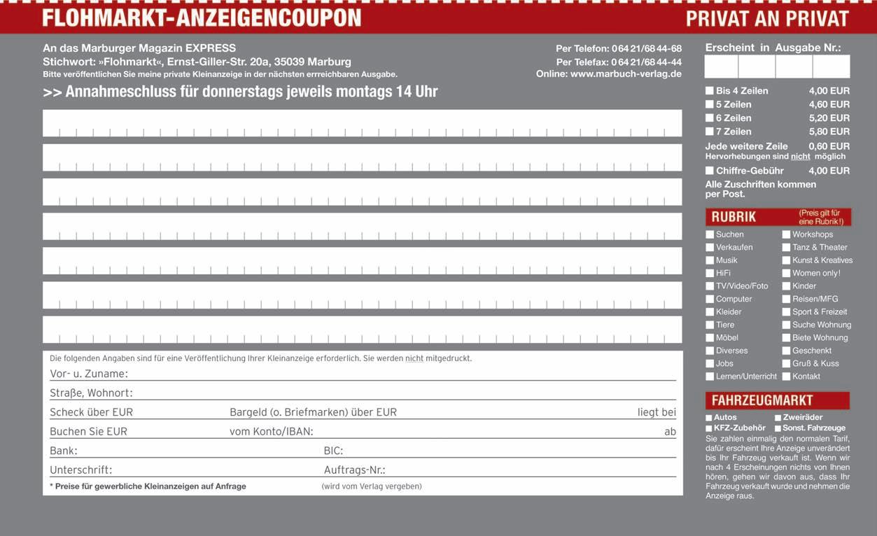 Fahrzeugmarkt – regional & schwarz auf weiß!