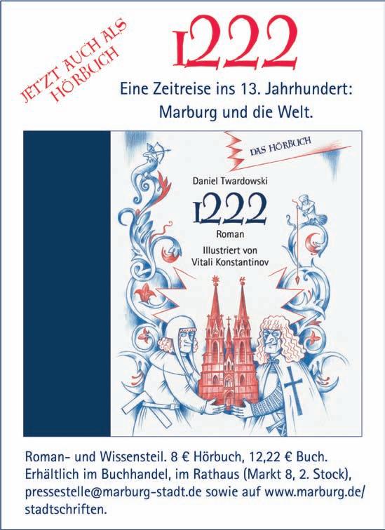 Sabine Preisler, Leiterin der Marburger Stadtschriften, freut sich zudem, dass die Hörbuchausgabe von „1222“ zu einem symbolischen Preis – ein Euro für jedes Jahrhundert des Stadtjubiläums –erhältlich ist.