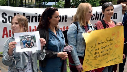 Hunderte kamen am 20. Juni nachmittags zur Kundgebung vor den Kaufmännischen Schulen. Schüler*innen, Lehrkräfte und viele weitere Menschen protestierten gegen die Abschiebung Serhats und forderten seine Rückkehr nach Marburg. Mitschüler*innen äußerten ihre Bestürzung und ihren Wunsch, dass Serhat zurück nach Marburg kommt. Solidarität zeigten auch die GEW-Vertreterin Marylin Prange und Elke Neuwohner für das Stadtparlament. Gewerkschaftssekretär Ulf Immelt: „Wir sagen nein zu dieser menschenverachtenden Politik, die da aus Wiesbaden kommt!“ Und KiJuPa-Vertreter, die dazu zuvor 3000 Flyer in den Schulen verteilten, sagten: „Wer einen Schüler, einen Freund aus unserer eigenen Mitte abschiebt, kann nicht damit rechnen, dass wir Kinder und Jugendliche still bleiben! Holt Serhat zurück nach Marburg!“ ES