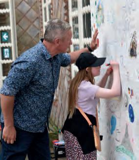 Es gab viele Mitmach-Angebote, wie das große Gemeinschaftsbild mit Thomas Gebauer, der auch die Veranstaltung moderierte, oder entdecken und malen beim Malatelier der blista (Blindenstudienanstalt).