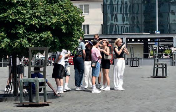 Auf dem „Platz der Helden“ im ehemaligen Krakauer Ghetto Podgorze erkunden die Teilnehmenden mit der App Actionbound die Gedenkorte.