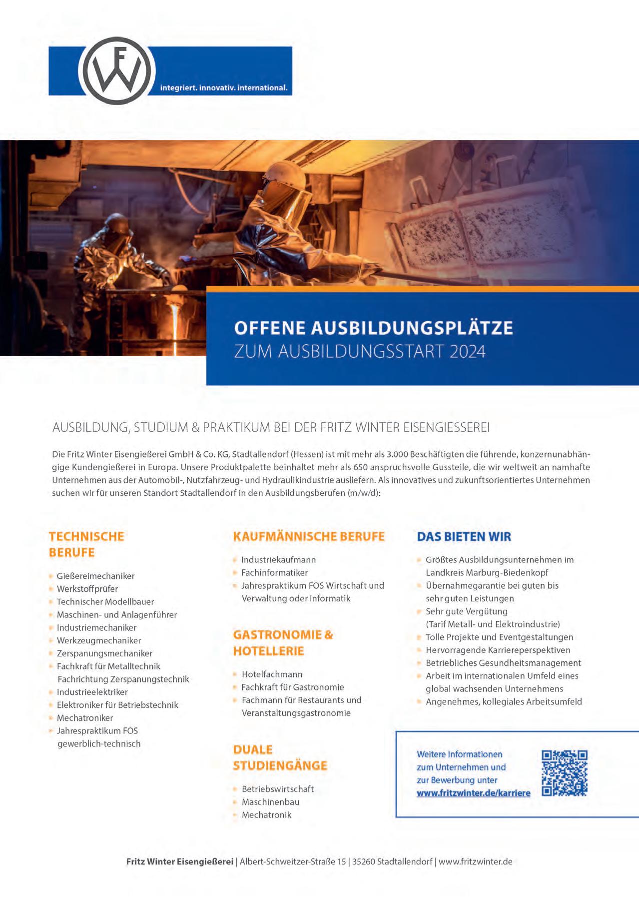 Der diesjährige Tag des offenen Ausbil dungszentrums bei der Eisengießerei Fritz Winter in Stadtallendorf war ein voller Erfolg mit sehr vielen interessierten jungen Menschen, tollen Gesprächen und dies bei gutem Wetter.