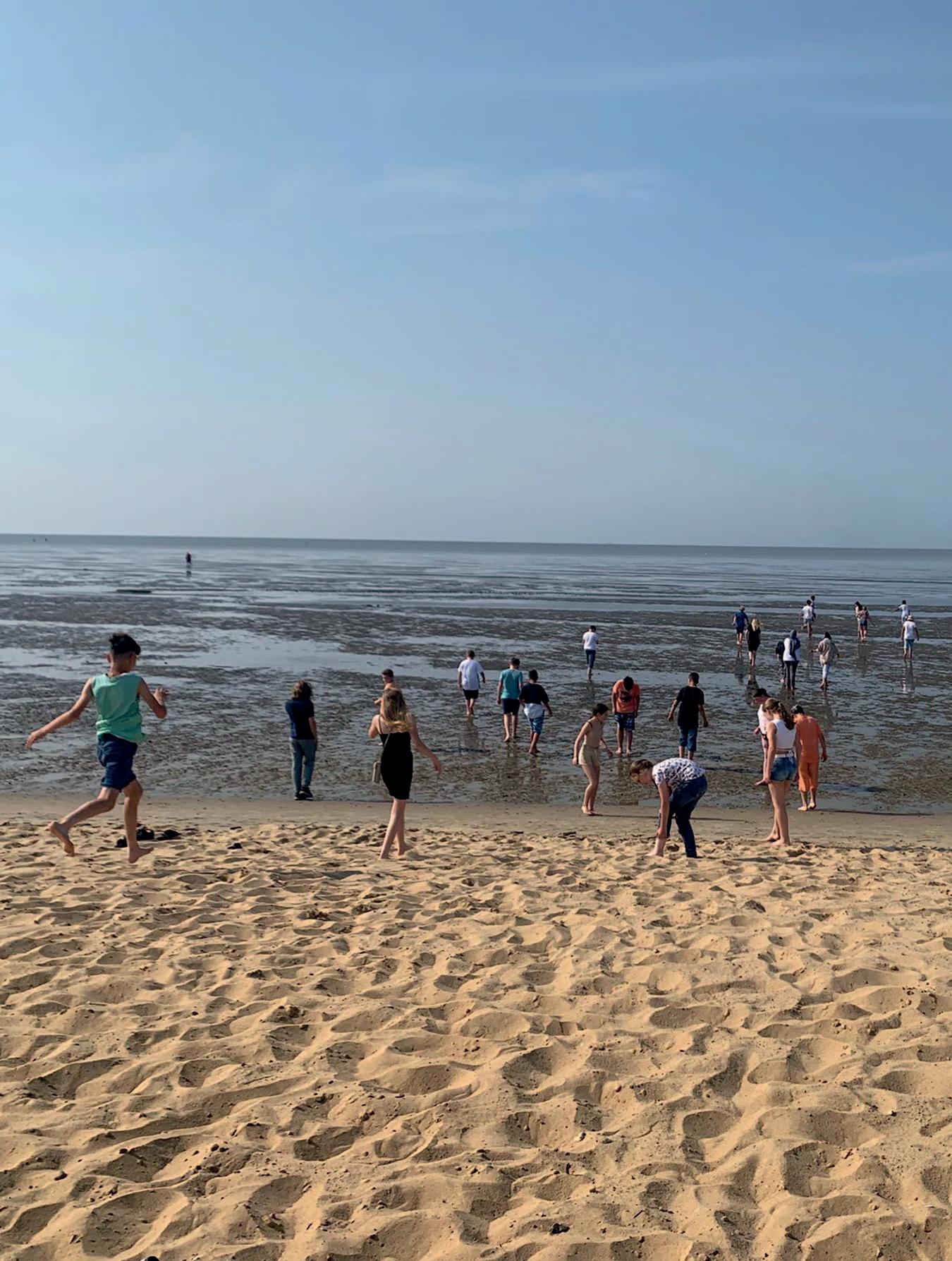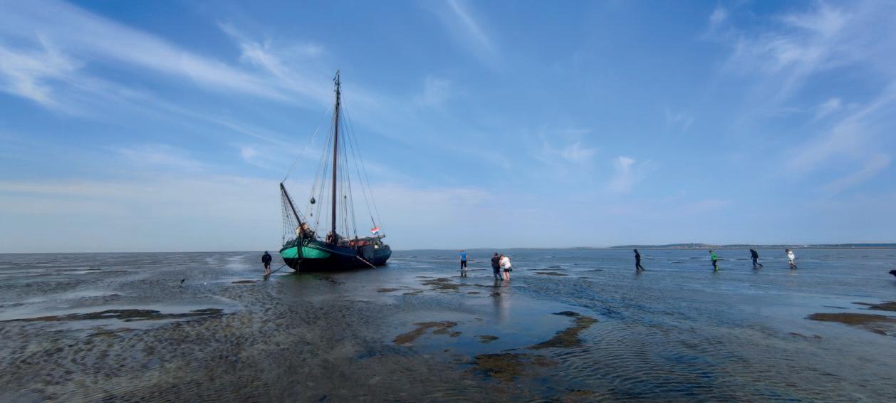 Nach dem Zwischenstopp auf Vlieland stand ein besonderes Ereignis bevor. Das „Trockenfallen im Wattenmeer“, dabei wartet man im „Wattenmeer“ bis die Ebbe einsetzt. Das Wasser verschwand langsam in der Abenddämmerung und man konnte kilometerweit über das prachtvolle Watt blicken. Der Sitz des Ankers wurde dann noch kontrolliert bevor die Nachtwachen eingeteilt wurden. Die Jungs mussten in 2er bzw. 3er Gruppen viertelstündlich kontrollieren, ob der Wind zunahm, wie sich die Wassertiefe verändert und dass das Schiff nicht über den Anker treibt. Nach eine kurzen Nacht bei erneuter Ebbe ging es dann mit Kescher bewaffnet ins Wattenmeer um den Grund des Wattenmeers zu erkunden. Dabei wurden Krabben, Wattwürmer und Quallen beobachtet und auch schon mal Muscheln probiert.