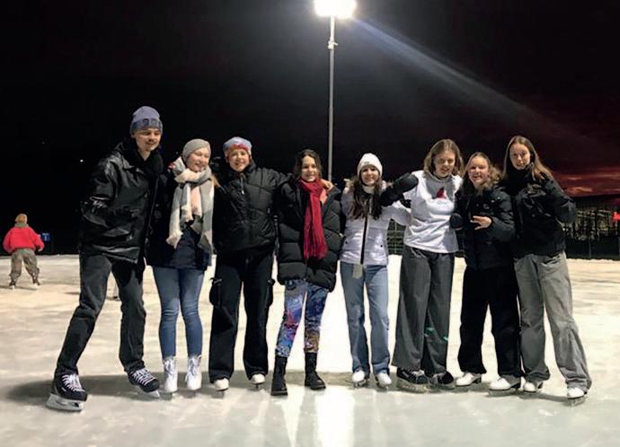 Am nächsten Tag waren wir mit fast allen Schüler*innen Schlittschuhlaufen. Die Eisfläche war, im Gegensatz zu der in Marburg, nicht mit Banden abgegrenzt und befand sich unter freiem Himmel. Während wir dort waren, durften wir einen wunderschönen Sonnenuntergang miterleben, den man so in Deutschland selten sieht.