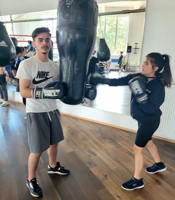 Richtige Kämpfe waren aufgrund der möglichen Verletzungsgefahr und der fehlenden Erfahrung nicht erlaubt. Trotzdem waren nahezu alle Jugendlichen von der Woche begeistert. Sie haben ihre Ausdauer trainiert, Boxkenntnisse erweitert und haben einen Weg gefunden, ihr Verhalten zu kontrollieren. Am Ende der Projektwoche sagen die Schülerinnen Thessa Schnellbächer und Doga Razlik: ,,Wir machen weiter wir melden uns da an.“ Gülay Ugur, Doga Razlik, Alma Aldayeh, Lesly Glass, Thessa Schnellbächer, Lilia Amitouche, Robert Marinache