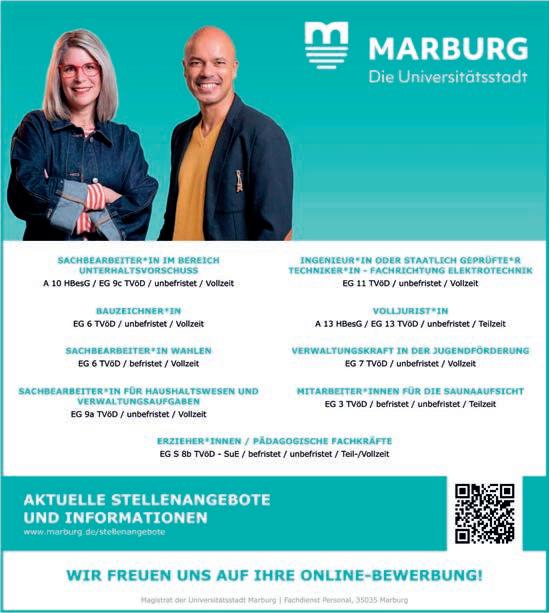 l MARBUCH – Marburgs Stadtbuch gibts jetzt für nur 6,99 (statt 14,90) im Buchhandel oder direkt beim Verlag, Ernst-Giller-Str. 20a (Nähe Bahnhof). (gewerbl.)