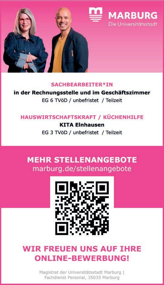 l MARBUCH – Marburgs Stadtbuch gibts jetzt für nur 6,99 (statt 14,90) im Buchhandel oder direkt beim Verlag, Ernst-Giller-Str. 20a (Nähe Bahnhof). (gewerbl.)
