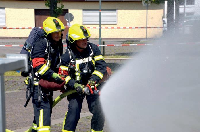 fährden den bewusstlos am Boden liegenden Staplerfahrer. „Das ist kein abstraktes Szenario. Vielmehr handelt es sich um eine Lage, die in jeder Kommune vorkommen kann und die jede Feuerwehr im Bezug auf die Erstmaßnahmen, auch ohne Spezialausrüstung, bewältigen können muss“, erläuterte Kreisbrandinspektor Lars Schäfer. Details zu der Übung hatte das Land erst Anfang des Jahres bekannt gegeben, so dass die Vorbereitungszeit verhältnismäßig kurz war. Hierin sah Schäfer aber kein Problem, schließlich sei das Kerngeschäft der Feuerwehr, sich im Einsatz auf gleich auf neue Situationen einzustellen.