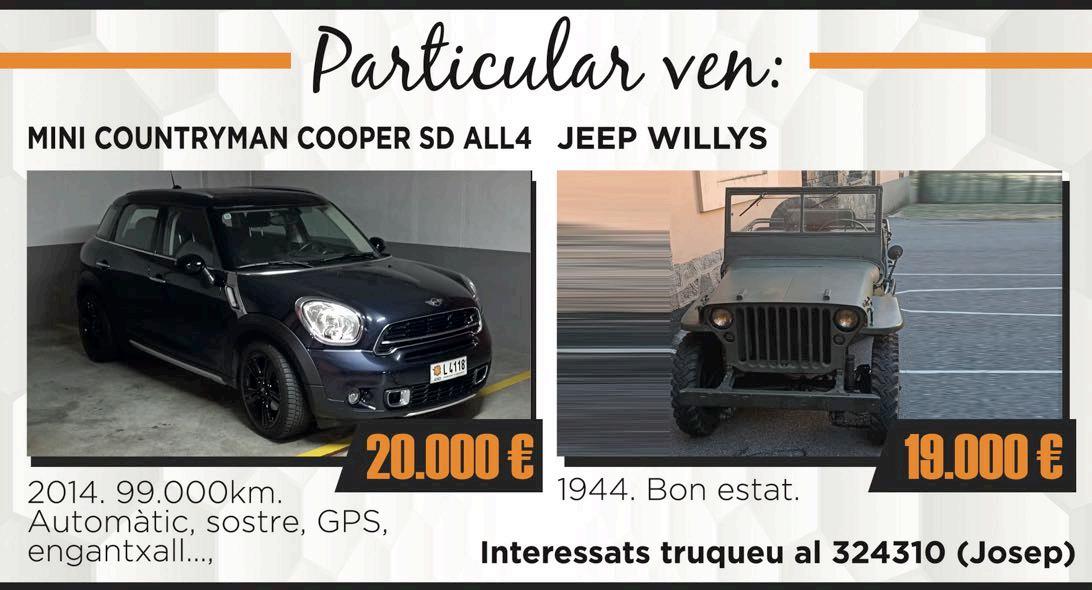 Informeu-vos a Automòbils Pyrénées. Els trobareu baixant cap a Sant Julià de Lòria, a Prat de la Tresa s/n. Tel 880700