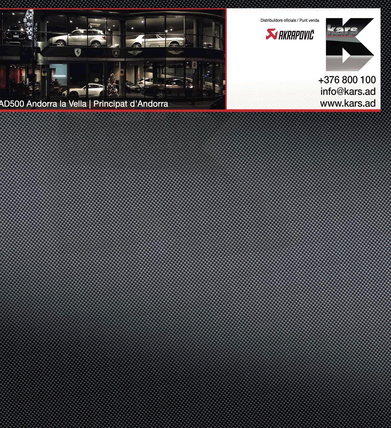 ambiental, aplicacions de fusta ‘Radica’, tapisseria Full Premium, seients davanters calefactables i elèctrics amb 12 posicions, cà mera de 360°, pantalla tàctil de 12,3’’, porta del maleter d’ac cionament elèctric, llandes de 20’’ (model Etere Forget), pinzes de fre de color groc, l’anomenat Handling Package, compost per uns frens Brembo de 6 pistons al davant i de 3 al darrere, paquet d’assistència tècnica i fnalment l’assistència al conductor Plus. El valor d’aquesta unitat a la què no li falta res, és d’uns 80 mil euros, claus en mà.
