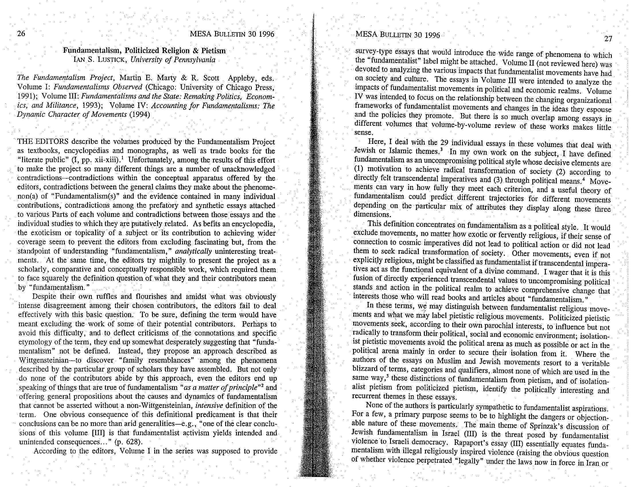 Defining Fundamentalism by Ian S. Listice