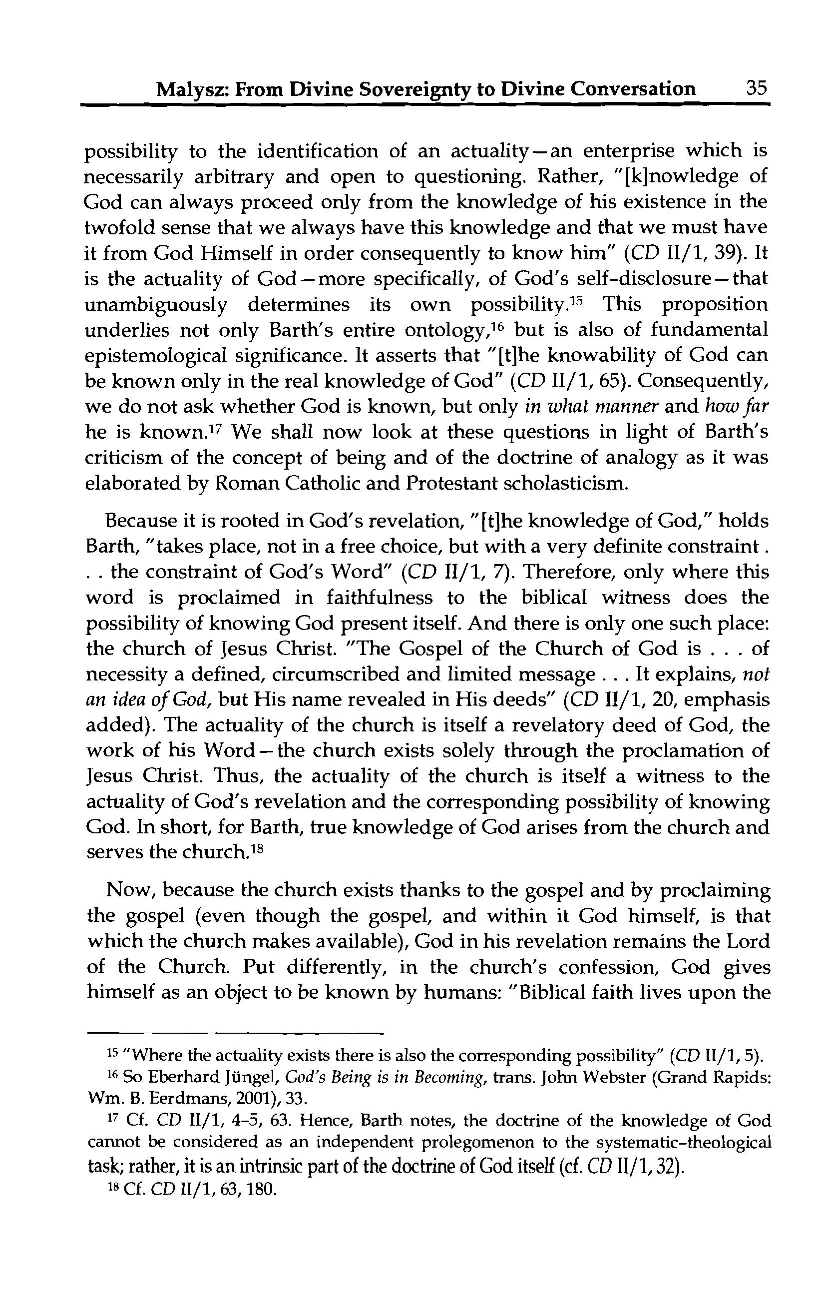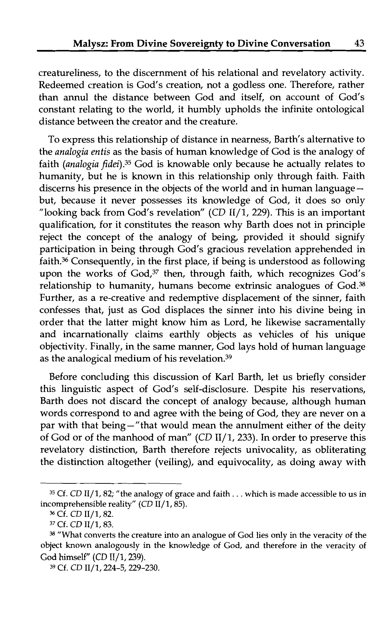35 Cf. CD II/1,82; "the analogy of grace and faith. . . which is made accessible to us in incomprehensible reality" (CD II/1,85).
