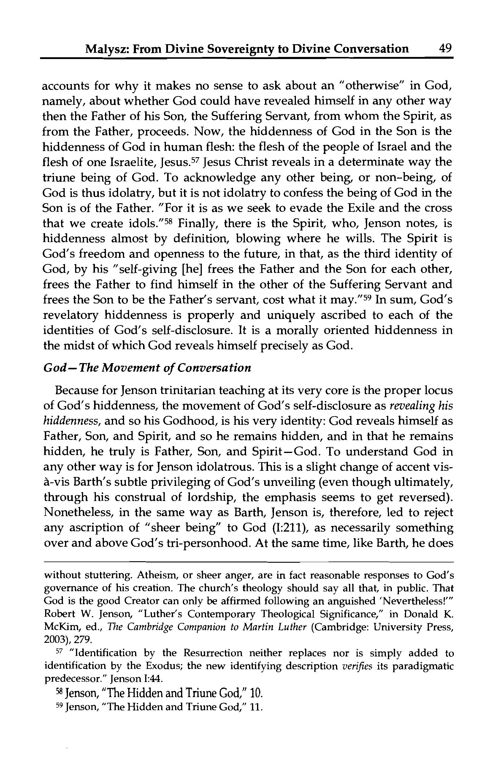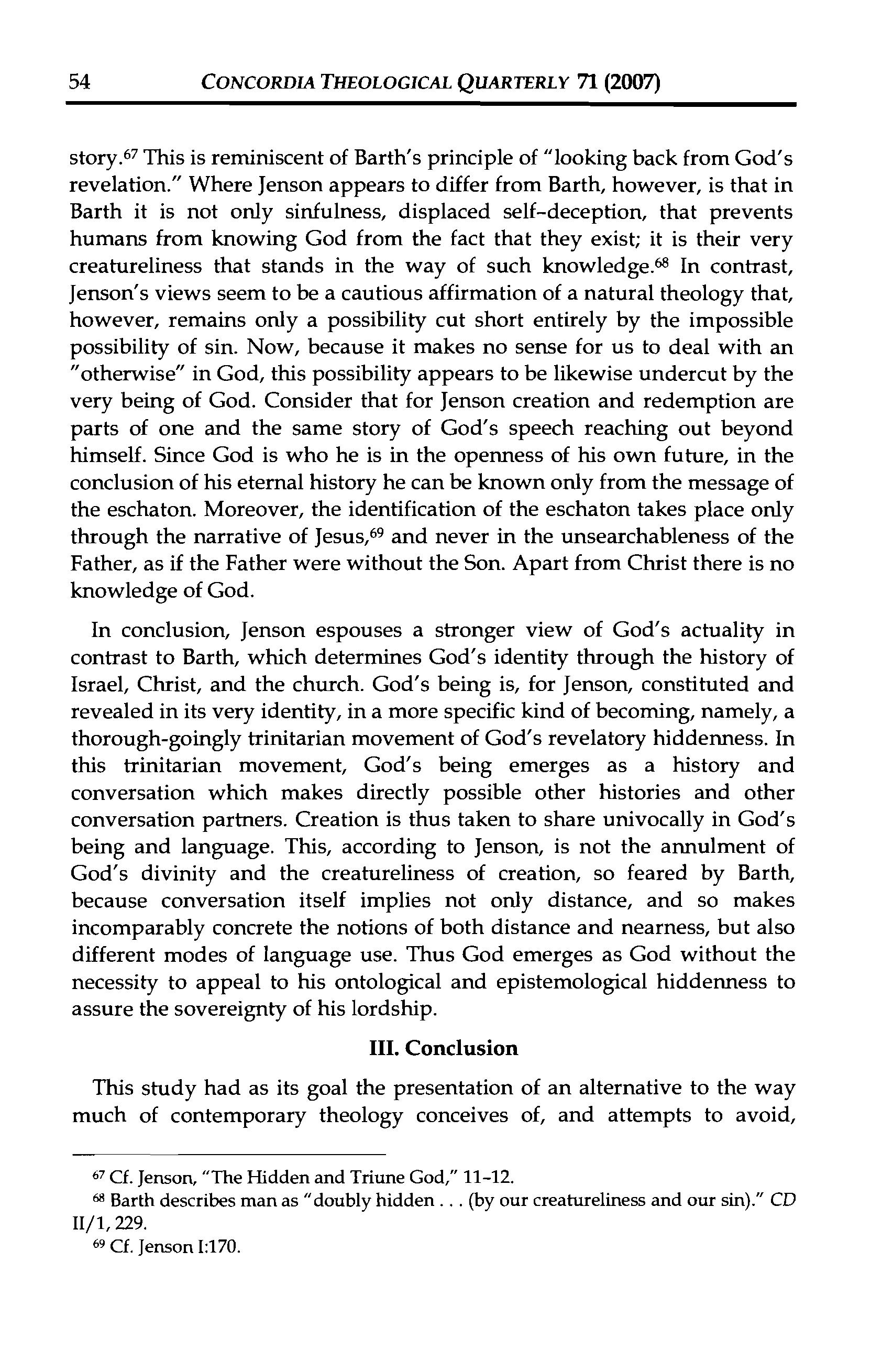 67 Cf. Jenson, "The Hidden and Triune God," 11-12.