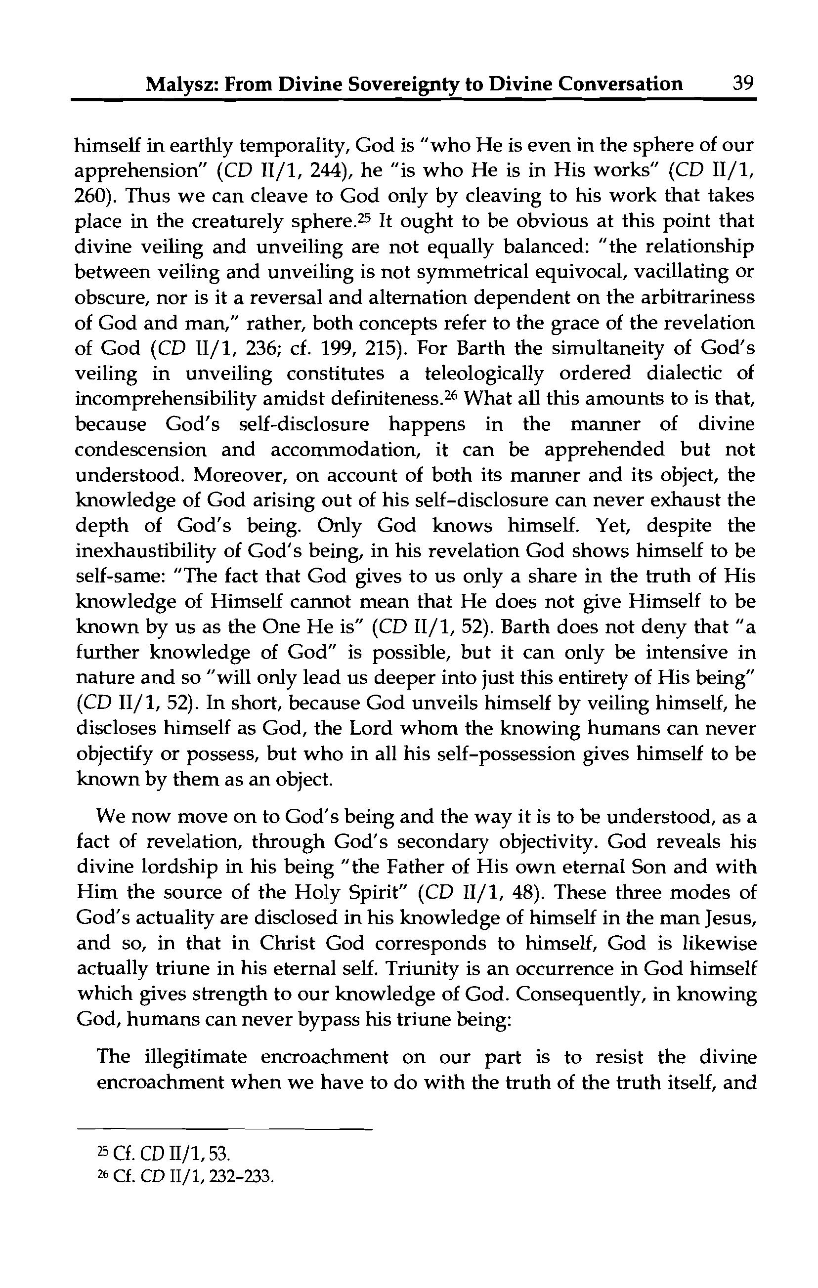 4 In his treatment of the doctrine of reconciliation, Barth seems to have recognized some of this danger; cf. CD IV/1, 186 and IV/2,224.