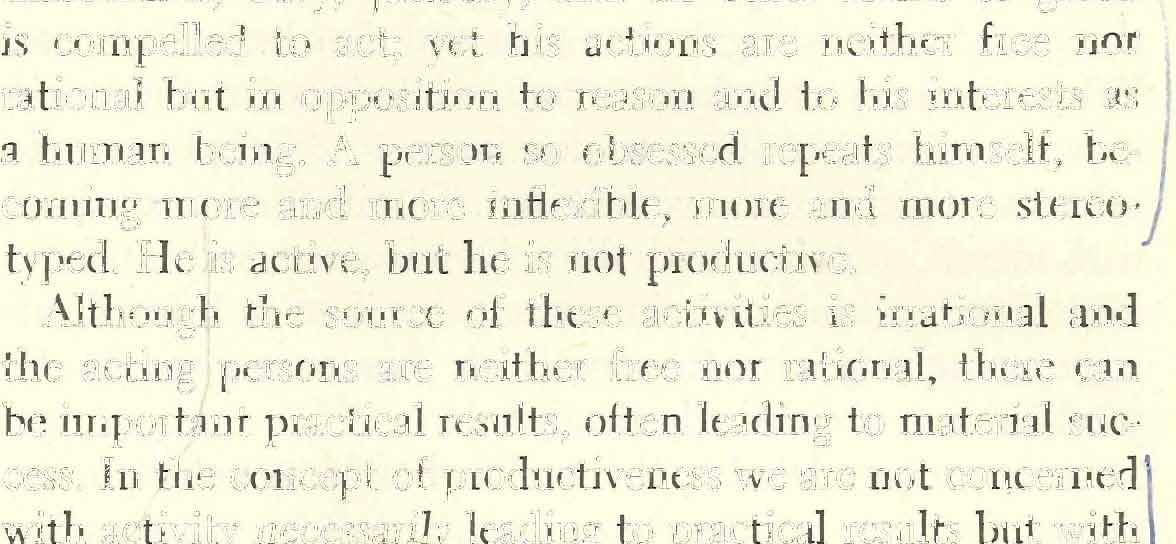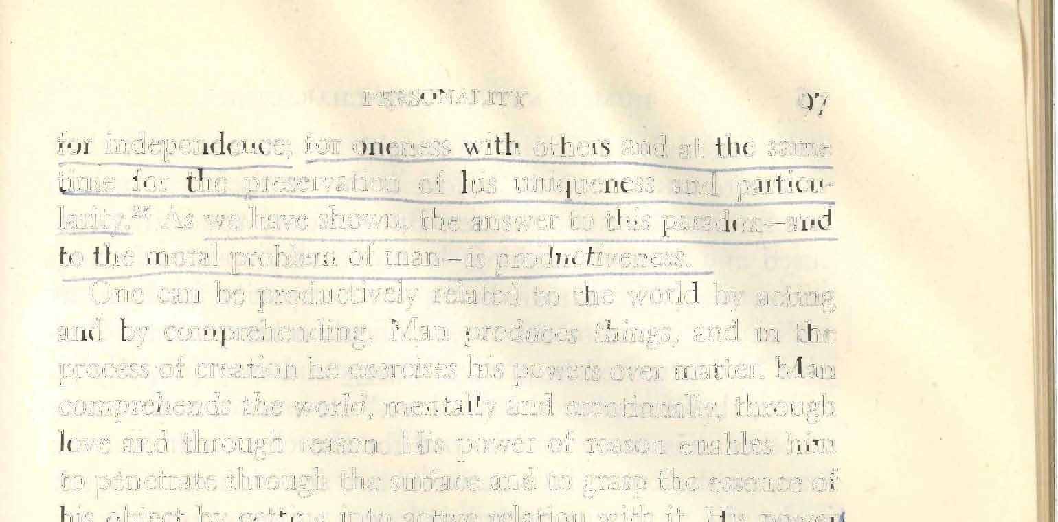 ourselves to inquiry into the productive orientation . productiveness appears studying the concrete the general.