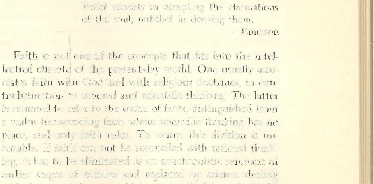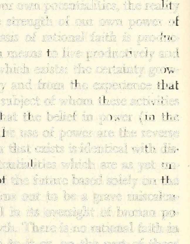 has not yet achieved the building of such an order, and conviction that faith. like faith too, thinking based the education to or to bring out something which is potentially present. Education sense results in existence, which means literally to stand out, to emerged from the state of potentiality into that of manifest reality.