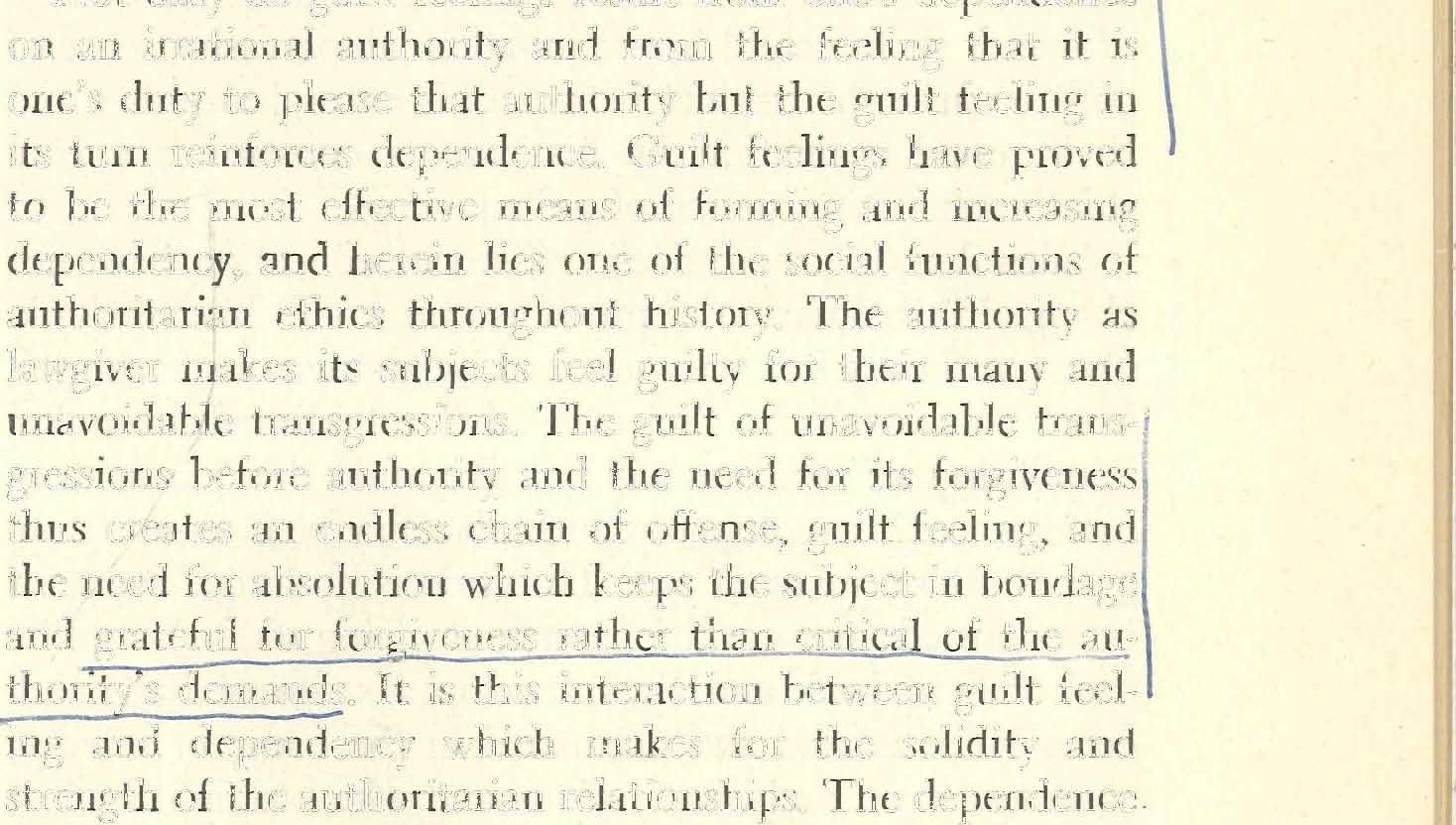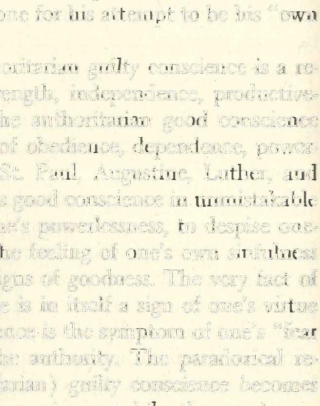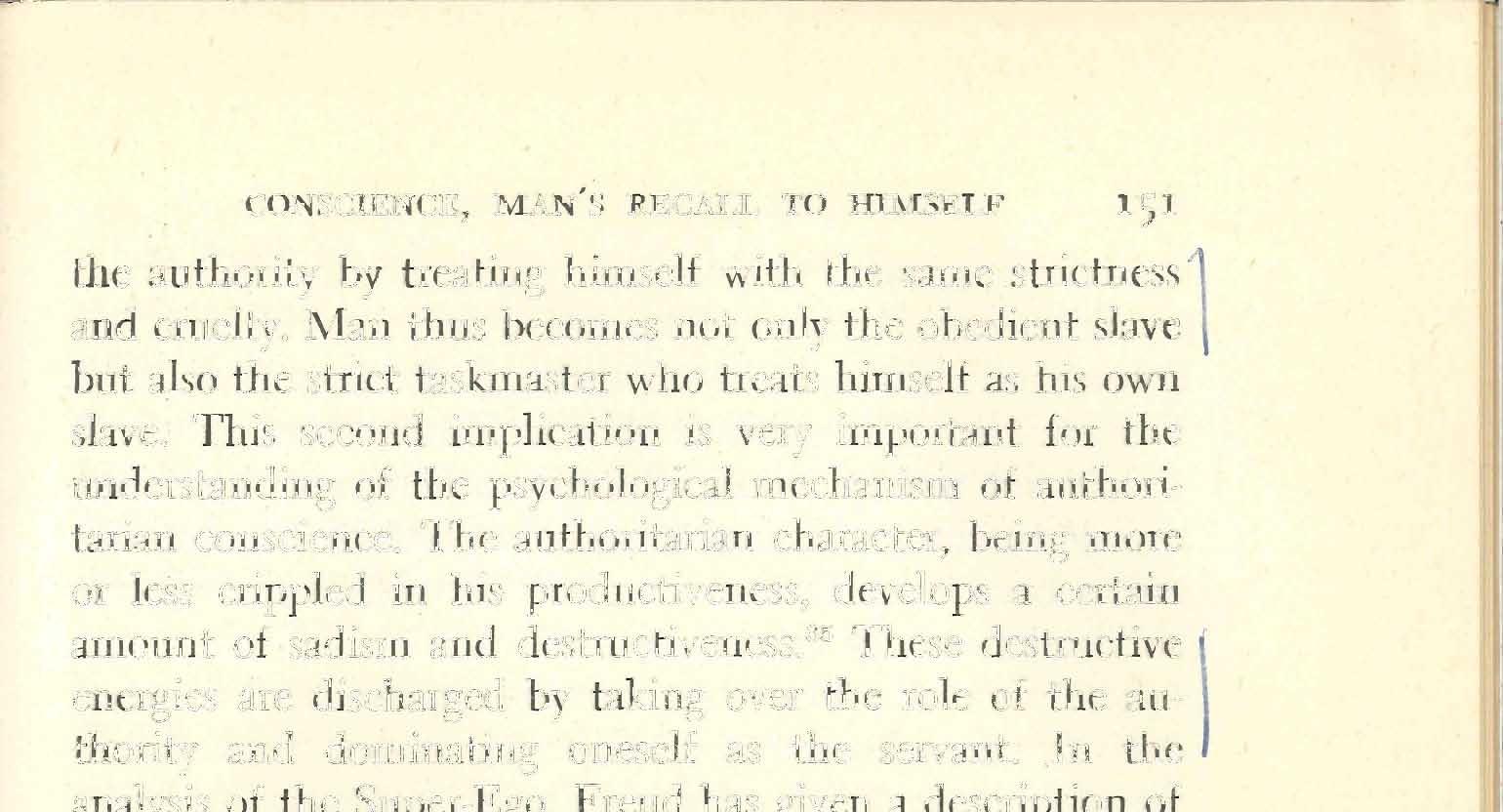 But authoritarian character also to dominate fact, masochistic are always present, they strength their repression respectively. (See authoritarian character Escape Freedom, pp. ff.)