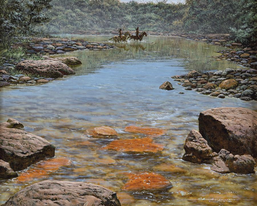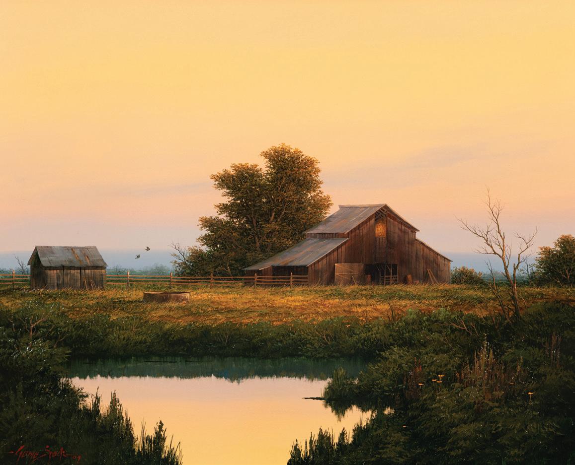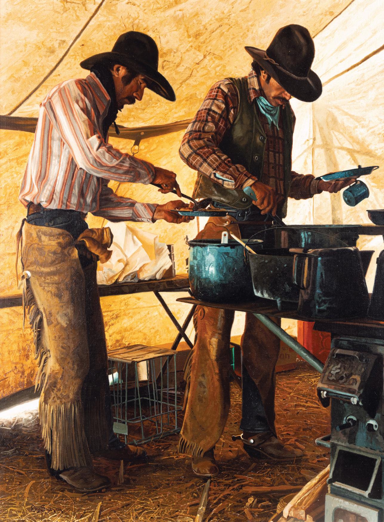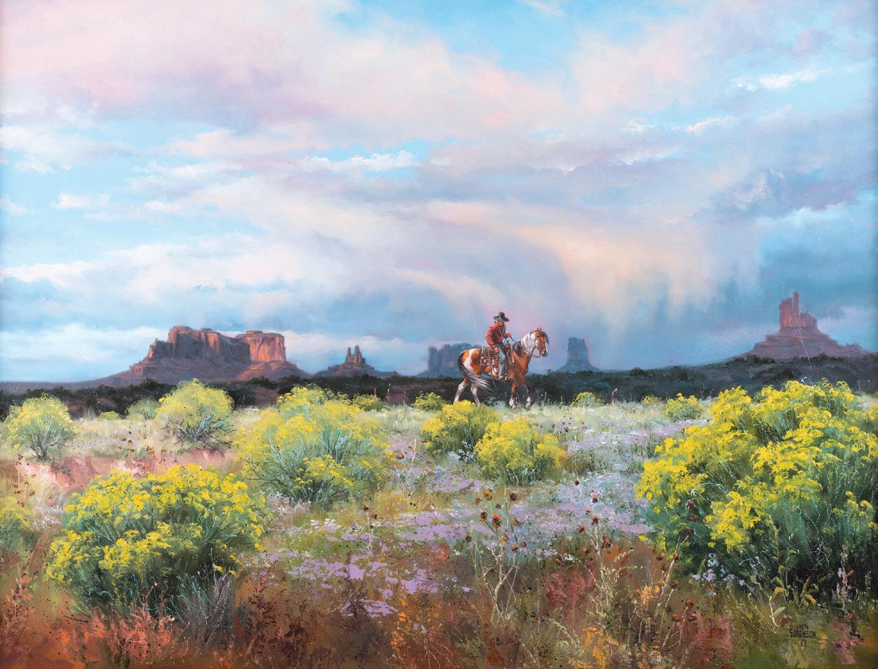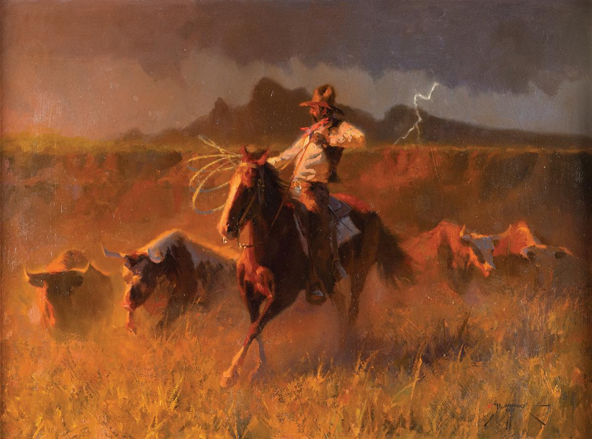 Front Cover: Lot 387, Don Oelze, Dusk at Elkhorn Camp, 44” x 44” oil on canvas, $25,000-35,000
