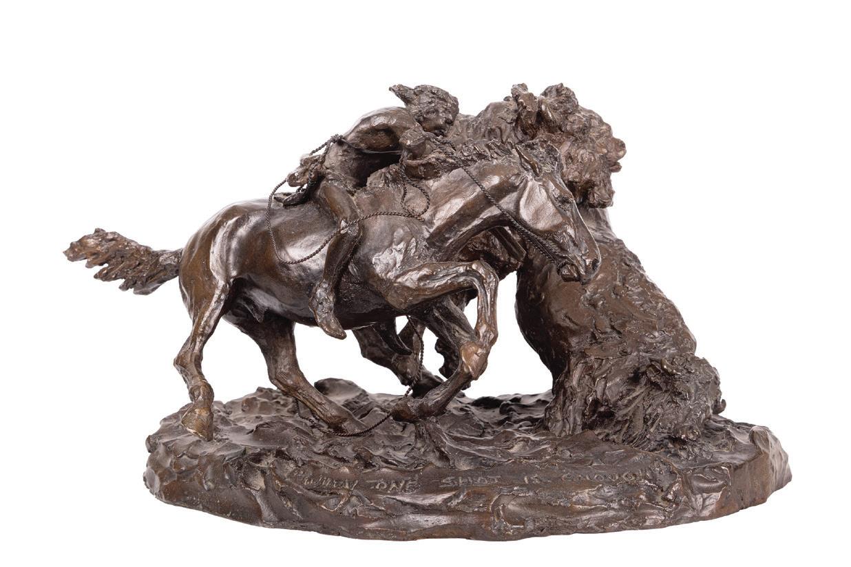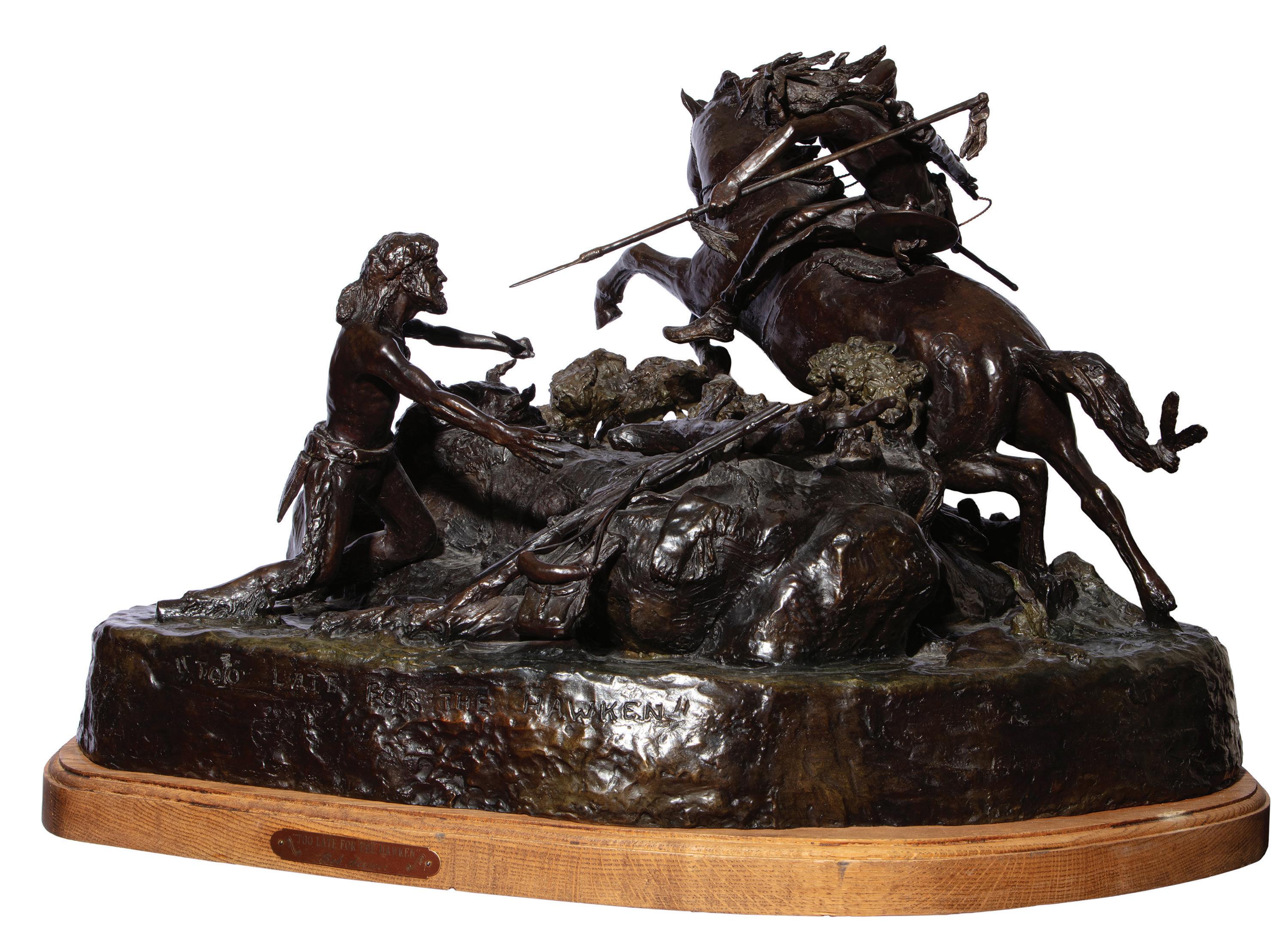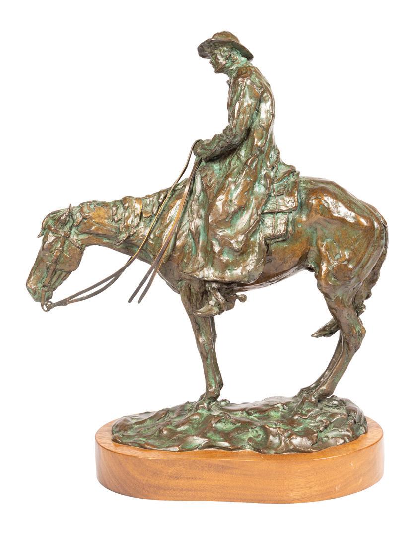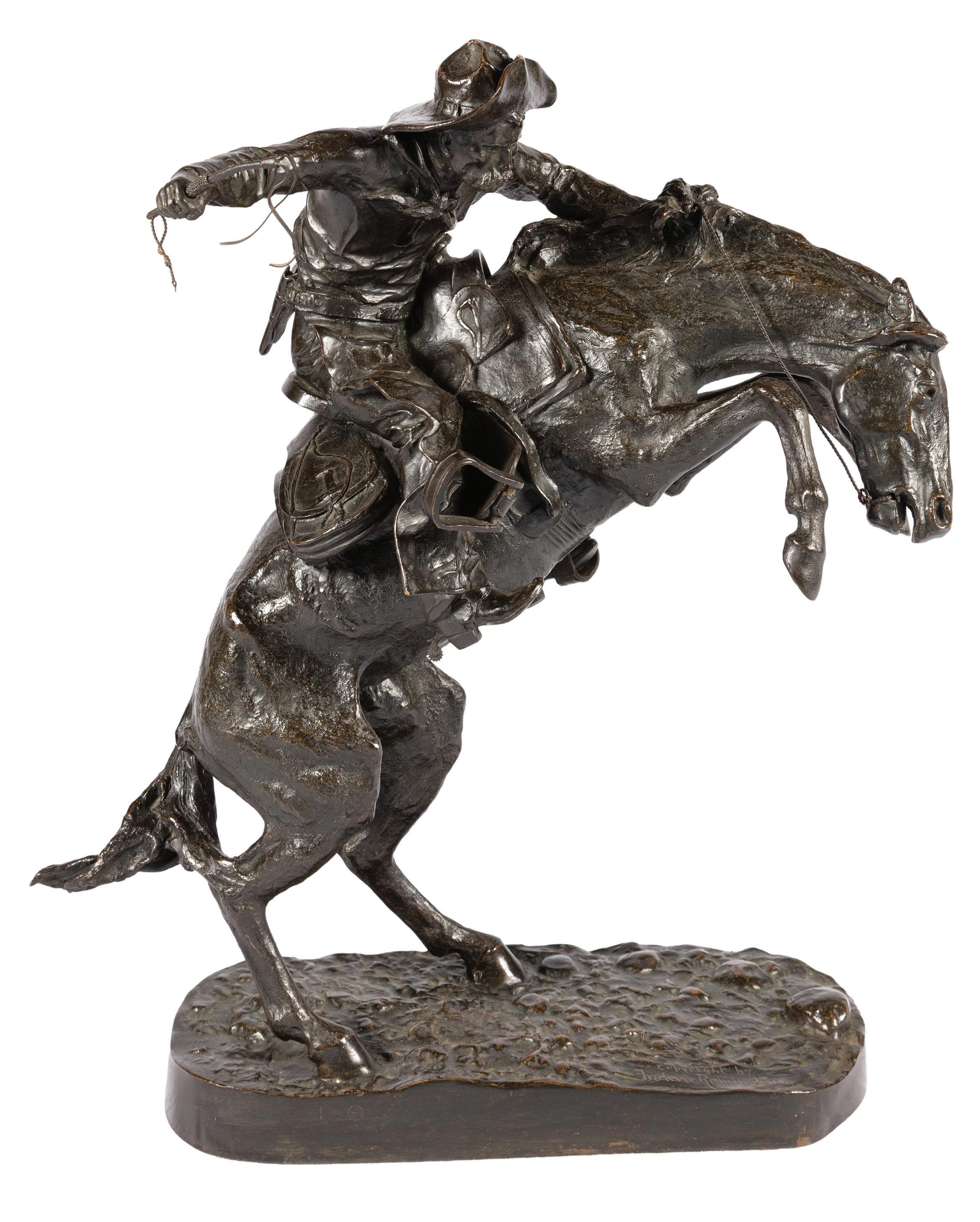 Back Cover: Lot 632, Frederic Remington, The Broncho Buster, 22 ¾” x 19” x 12” original bronze, $40,000-60,000