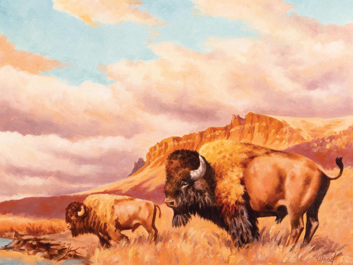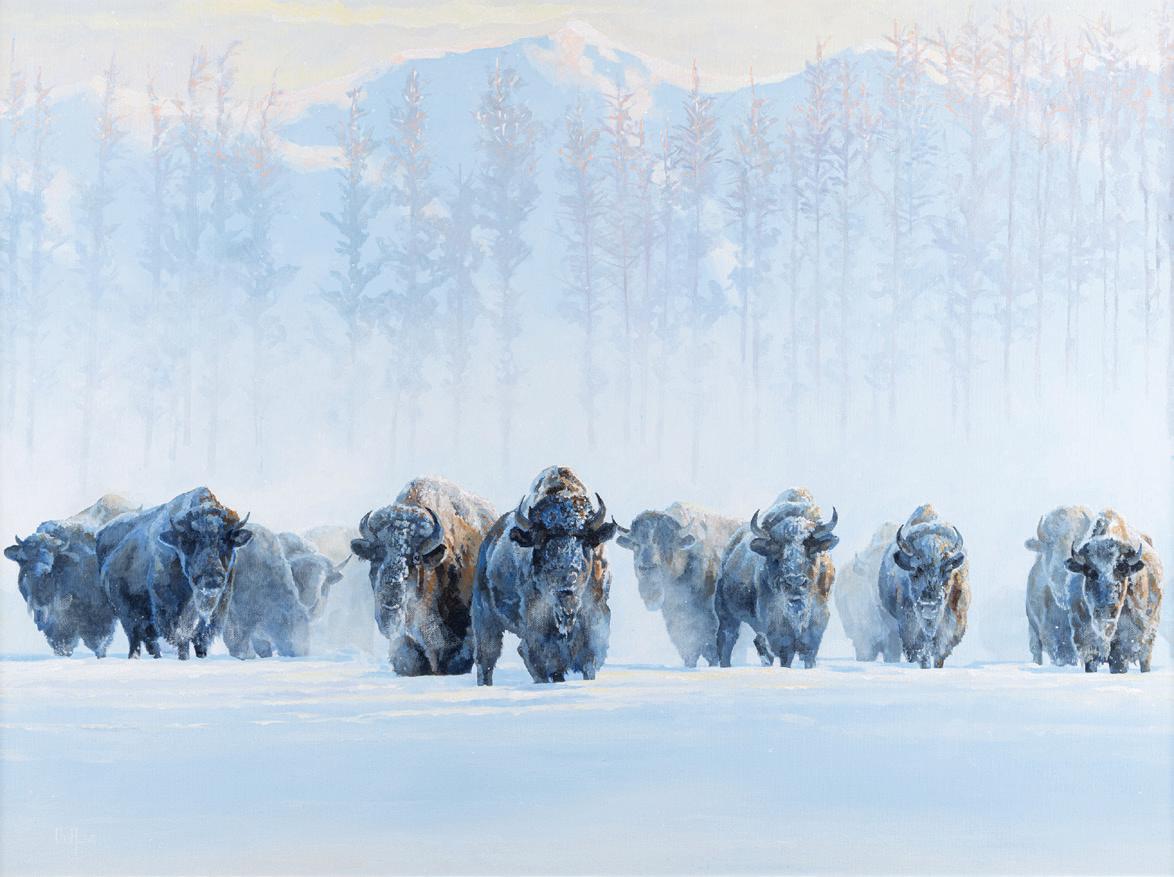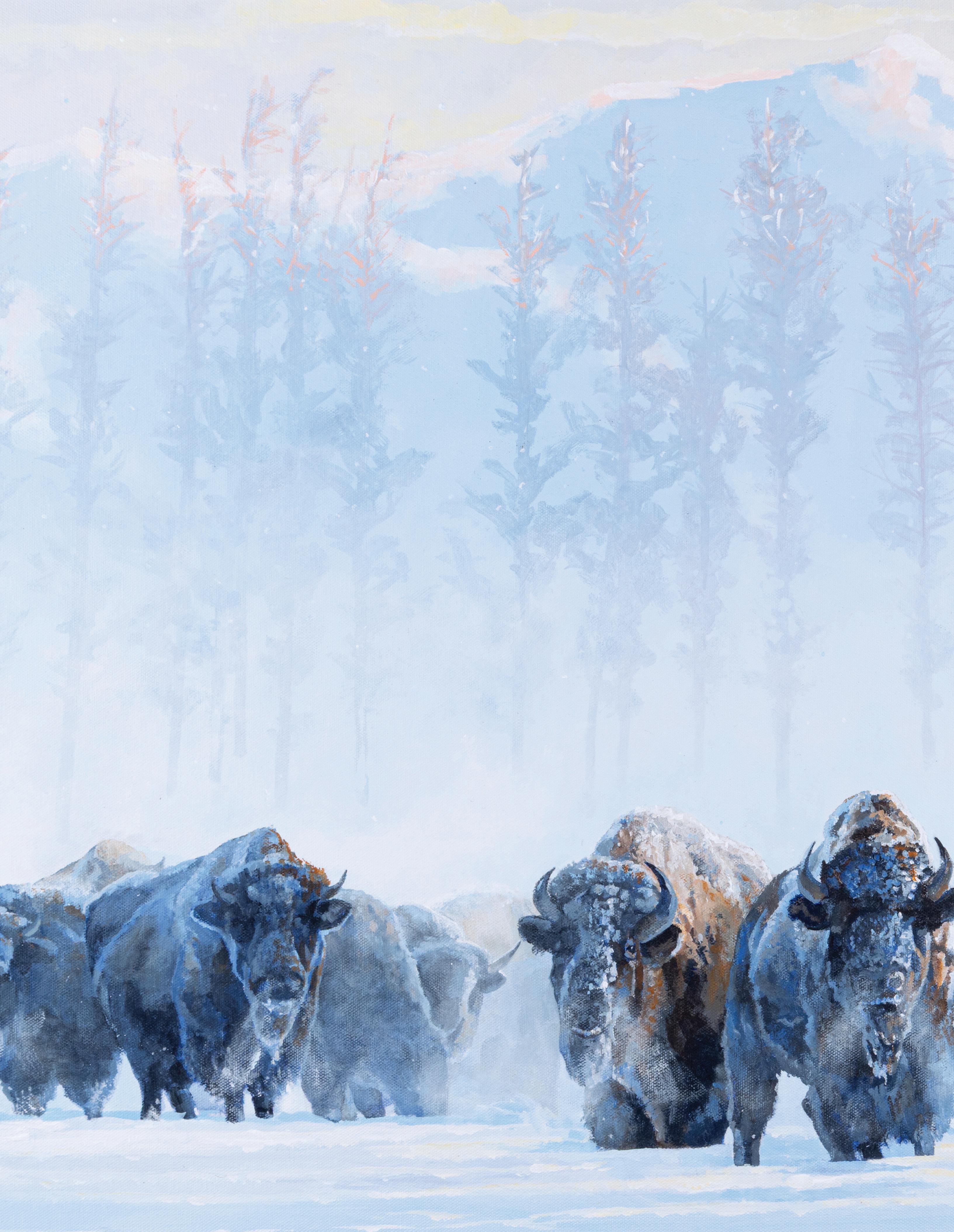 Inside Back Cover: Lot 380, Ed DuRose, Buffalo Herd, 30” x 40” acrylic on canvasboard, $3,000-4,000