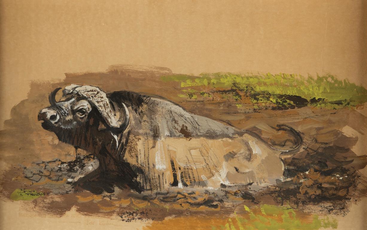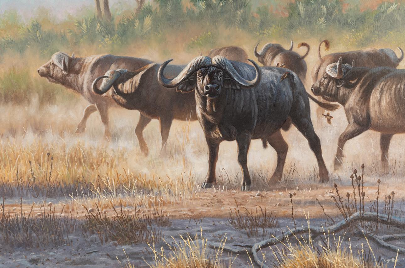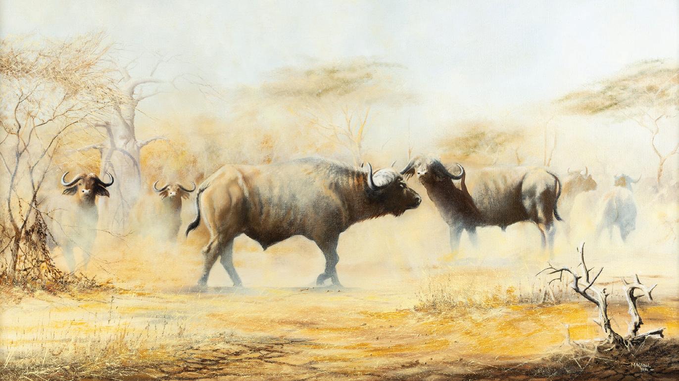 Inside Back Cover: Lot 380, Ed DuRose, Buffalo Herd, 30” x 40” acrylic on canvasboard, $3,000-4,000