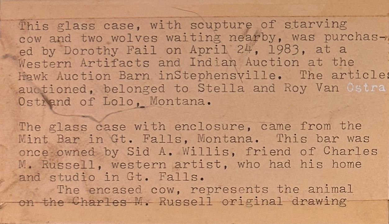 Provenance: Collectors Notes. Collector Bill Brandt, a proud Montanan, born and raised in Great Falls, MT.