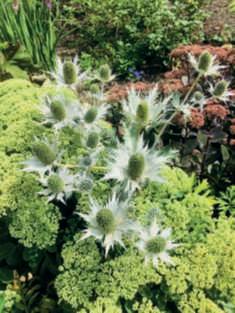 Summeristheirpeakseasonofsplendour,buttruthfully,theyare beautifulallyearround.IadorePennisetum,withitsfluffyinflorescencesresemblingfoxtails,themajesticMiscanthus,Calamagrostis, andPanicum,whichdominatethegardenwiththeirverticalityand austerity,andthedelicateMolinia,especiallyvarietieslike‘Transparent’and‘Windspiel’.Forshadedareas,myidealchoicefallson Hakonechloamacra:itslightandairycanopyandperfectproportions create a magical and evocative atmosphere. IalsogreatlyadmireSporobolusheterolepis,beautifultobeholdand wonderfullyfragrant,MuhlenbergiareverchoniiandM.dumosa, Eragrostiselliottii,withtheirlightandairyblooms.Theyareall splendid,ifproperlyused.Andforthoseworriedaboutallergies,I assureyoutheseplantsareinnocuous:thewordofanallergysufferer who has lived and workedwith them for thirty years. ■