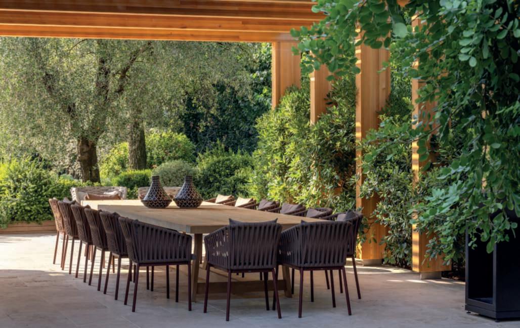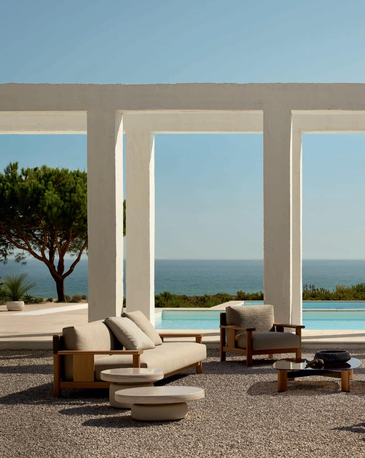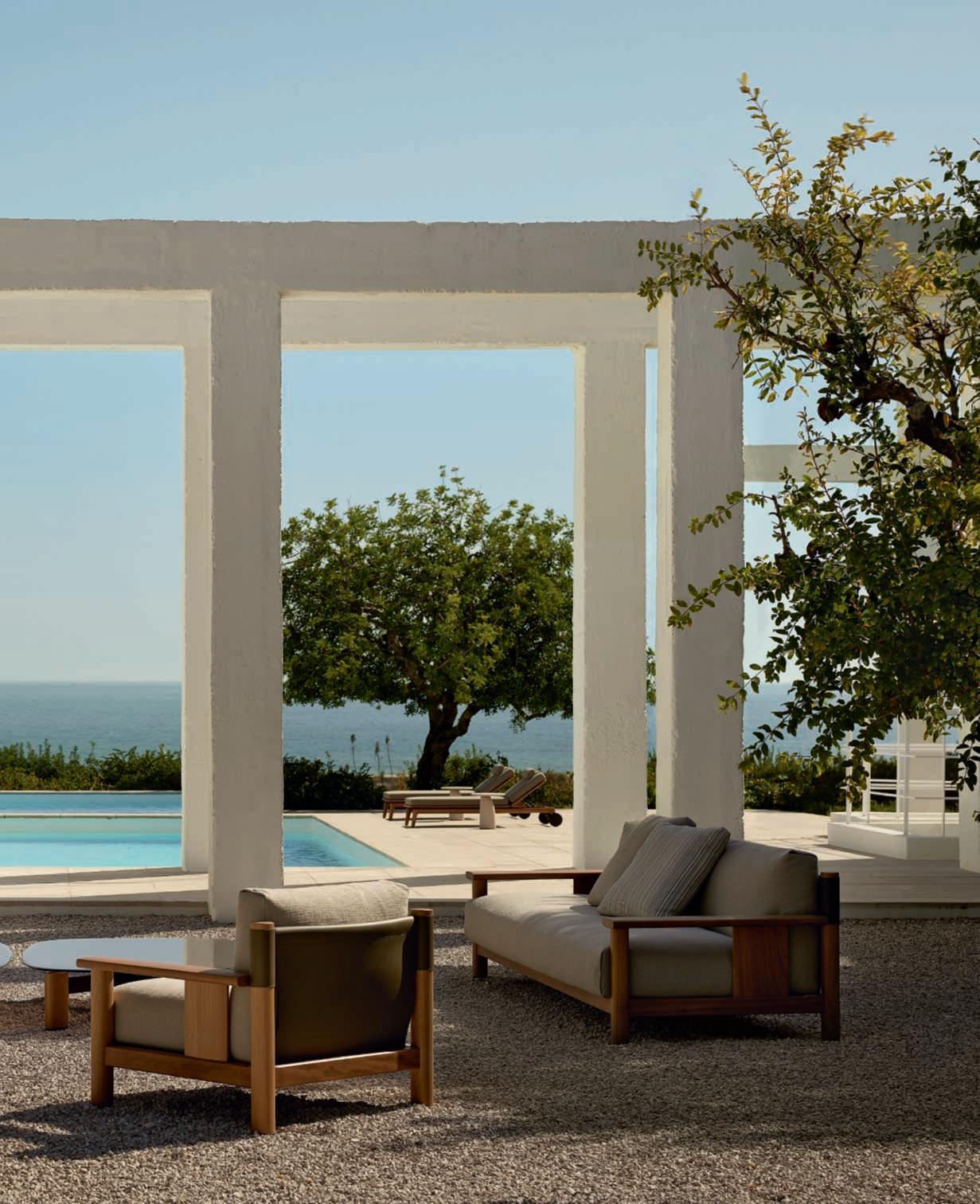 Realizzato in legno di Iroko,iltavolo Pallet ècaratterizzatodalineepulite edessenziali.Archetipo della classica sediadaveranda, Cassis èunapoltroncinaadattasiaallazonadiningsia aglispazidiconversazione.Entrambii modelli sono firmatiPieroLissoni.