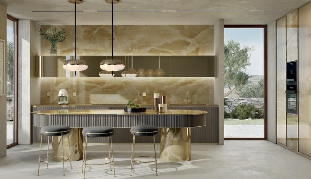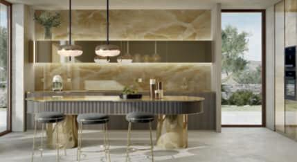 Vetrite, il metallo in finiturachampagne satinato e la pregiata cannettaturainlegnocheesprimel’eccellenzadell’artigianatoitaliano.Tutto ruotaattornoall’isolacentralecheuniscefunzionalitàedesteticaepuò esserepersonalizzataconuntavoloasbalzolarendeunluogoidealeper laconvivialità.LenumerosealternativedicomponibilitàcontribuisconoinoltreallamodularitàprogettualedellacucinaSICIS.IlprogrammaRialtoprevedeinfattiunampiosistemadicolonne,basiepensili personalizzabilipensateperlapreparazioneeperilcontenimento.Le antedellecolonne,conunmorbidomovimentoscorronolateralmente, svelando un ampio spazio funzionale al loro interno. l sicis.com
