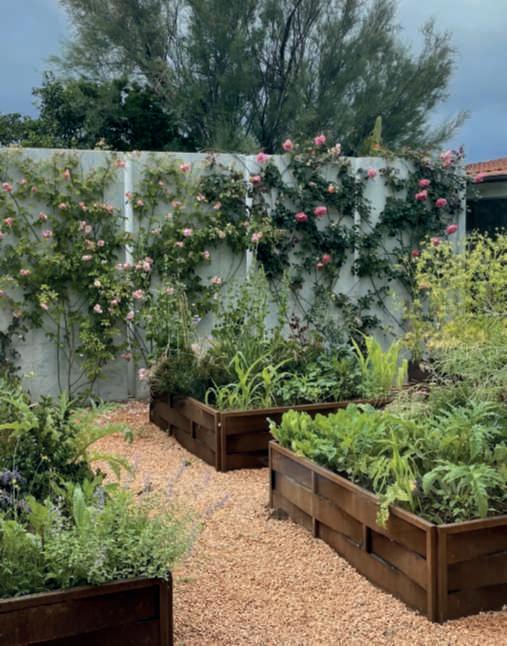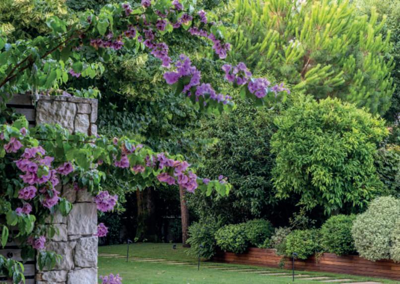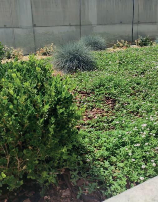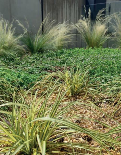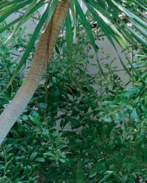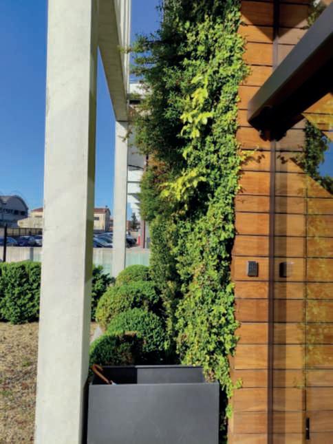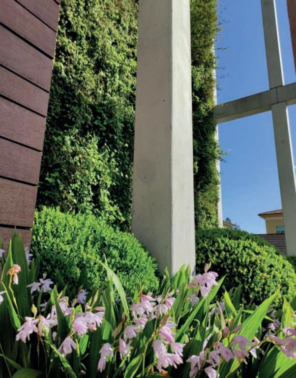 contenerealcunideivaloririchiestiequindiabbassareillivello totale dell’impronta di carbonio sull’ambiente”. Nellarealizzazionedelleparetiverticalinienteèstatolasciatoal casoeKristianBuziolsièdimostratounvalidoalleato,consigliando piante a bassissimo consumo idrico, così da ridurre al minimo glisprechi,permettendoaltempostessounafiorituradifferenziata nelsusseguirsidellestagioniecreandoun’armoniadisfumaturedi verdealternateaicolorideifiori,echecoltemposisononaturalmentemischiateinuneffettosimileallamacchia mediterranea:lentisco, oleandro,pitosporo,rosmarino, Teucriumfruticans,cisto, Ficuspumila , Atriplexhalimus,convolvolo, Solanum ,caprifoglio,verbena…insomma unagioiapergliocchi. “Unascelta,all’inizio parsadifficileeazzardata,èstataampiamenteripagata dal risultato e dallagioiadivederecrescere ungiardinorigogliososu unaparetealtrimentiin crudocemento”,conclude Federica Martini. l