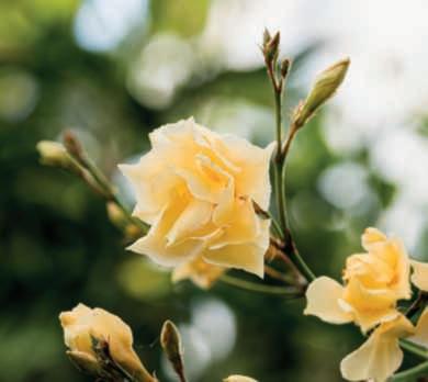 Oleander,innategenerosity “Goodmorning,madam,I’mlookingfor ahardyplantthathasabundantfloweringthroughoutthesummerand isnotoleander.”EverytimeIreceivethisrequest,Ifindmyselfwondering:why?Irefertoitas“thegreatoutcast.”Yet,Iamalwaysimpressedbytheprofusionofflowersitmanagestobringintobloomeach summer,withoutneedingspecialattention.Itseemsalmostparadoxical thatsuchabeautifulandgenerousplant,wiselychosentobeautifyour highways,isconsideredtobeoflittlevalue.Orperhapsitisprecisely forthisreason,duetoasortofgardeningsnobbery,andalsobecause itisnotoriouslypoisonous:simplyavoidconfusingitwithlaurelleaves tosteerclearofskewersthatcouldsendyoustraighttothehospital. NeriumoleanderbelongstotheApocynaceaefamily,acloserelativeof Plumeria,commonlyknownasfrangipani,whichisthebeautifulcousin thateveryonedesiresandseeks,perhapsbecauseitevokestripstoThailandorIndonesiaandemitsacaptivatingscent.ThenameNeriumoleanderhasGreekorigins:nerosmeansmoist,whilethespecificepithet oleanderreferstoaLatinalterationoftheGreektermrododéndron, composedofrhódon(rose)anddéndron(tree),referringtotheplaces where oleander grows wild and its characteristic colour. Native to the