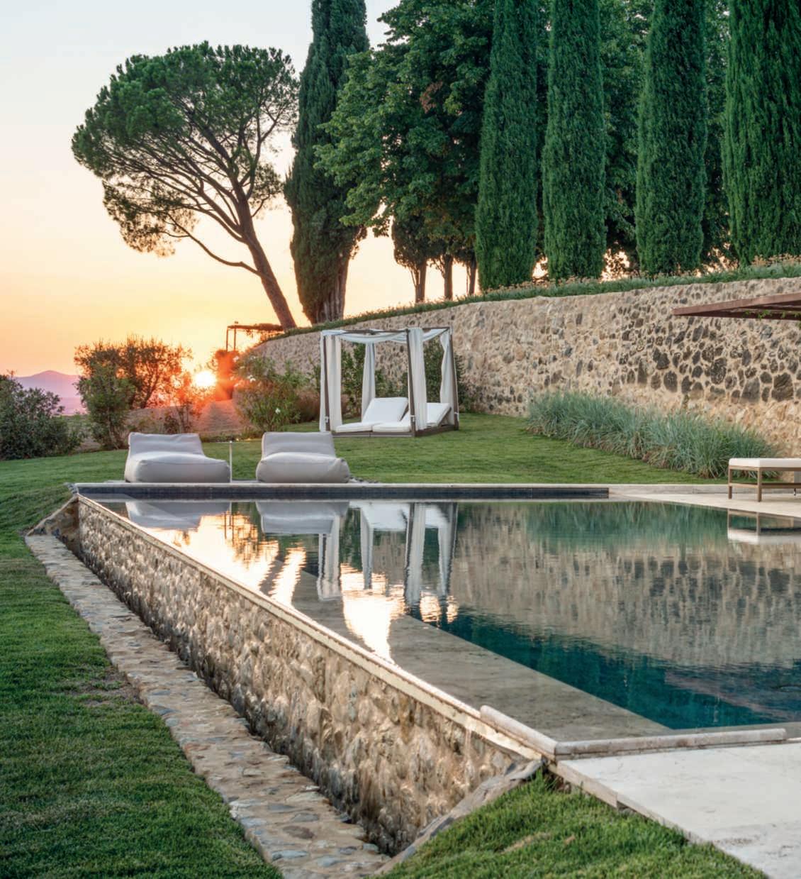 Il progetto dell’architettoFilippo Gastone Scheggi in Val d’Orcia ha recuperato la bellezza originale di Villa Bell’Aria Renaissance harmonies in dialogue with the landscape. e project by Architect Filippo Gastone Scheggi in Val d’Orcia has recovered the original beauty of Villa Bell’Aria