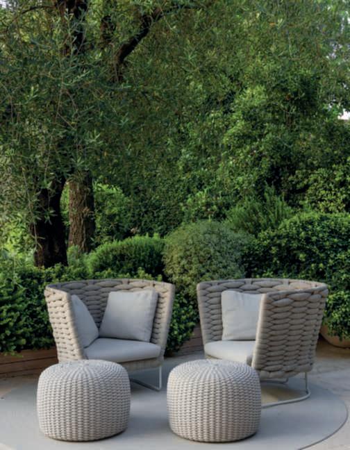 Poltrona e divano TheSecretGarden, designRobertoLazzeroni,abbinatia cesta Sherazade diSimonaCremascoli.