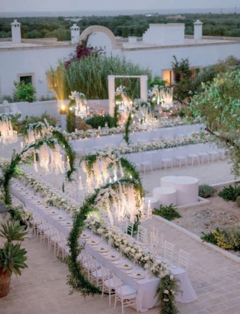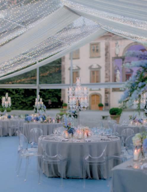 Whatarethecharacteristicsofthismood? Curated, romantic, the same and yetalwaysnew.Manypeopleareamazedbythisabilitytoalwayscomeup withsomethingoriginal,butIstillhavethousandsofideasthatIwouldliketo realise.Ijusthavetofindtherightpersontoproposethemto.Perhapsthebest thingisthatIdonotprovidepre-packagedsolutions,butalwayscustomised creations.Thatiswhy,asIsaidbefore,itisimportanttositdownandlisten tothecustomer.Everypersonisdifferent.Andthereforeeacheventmustbe uniqueandcustomisedtothemaximumonmyclient,soIcreateitspecifically so that the wedding can be a unique and unforgettable day. Youmakeextensiveuseofflowersandplantsintheeventsyouorganise. Whatisyourrelationshipwithgreenery? Iaminlovewitheverythingrelatedtoflowersandplants,andinrecentyearsIhavestartedtogettoknowless commonandunusualspeciesthatIlovetoproposetobreaktheusualpatterns. Ispendalotoftimechoosingandarrangingtheflowers,whichIselectpersonally,onebyone.Wemanageeven2,000,3,000,upto5,000flowerstems, andalthoughitisachallenge,itisextremelyrewardingtomixandharmonise differentvarieties and colours to create a unique and unforgettable effect. Whatisyourgreatestsatisfactionwhentheeventisover? Itishearingclients say,‘Ididn’timagineittobesobeautiful!’ThismeansthatIwasabletoexceedtheirexpectationsandofferaddedvalue:myexperience.Thisisthemost beautifulrewardformeandformyentireteam,dozensanddozensofpeopleto whomItrytotransmitmypassionanddedicationtoworkeverydayandwho are a fundamental part of my every success. ■