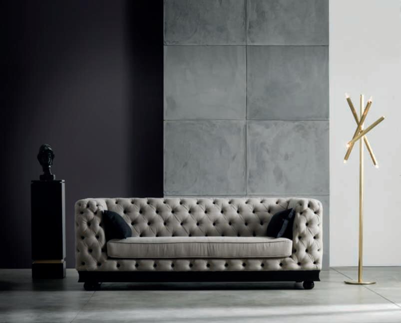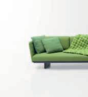Daybeddellacollezione Casilda di RamónEsteve.Lastrutturalineare inacciaioinoxverniciatoapolvere creauneffettocontrastoconivolumi importantidellacuscineria.Itessuti deltendaggiodonanoall’insiemeun aspettoeleganteedaccogliente.