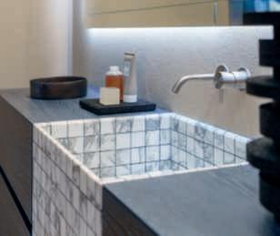 ProgettoBagno èunapropostadedicata allo sviluppodisoluzioniintegratedi arredamento e rivestimentiperlasala dabagno,caratterizzatedall’abbinamento di legnoematerialiricercati