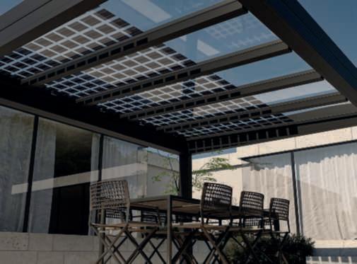 ScreenyHide,whichenrichestheScreenyrollersystem,isdesignedtoseamlesslyintegrateintoanycontemporaryarchitecture.Itboastsaminimalist aestheticand,thankstoitsabilitytocompletelydisappearwithinthewindowblockwhenfullyrolledup,maximisestheentryofnaturallightinto spaces. Integrated automation and optional LED lighting makethis system evenmoreversatileandcomfortable.Finally,KEintroducesanewversion ofitsinnovativeglassroom,Sunlight,equippedwithanintegratedphotovoltaicsystem.Thisrevolutionarysolutiontransformstheglassveranda intoacleanenergygenerator,reducingitsecologicalfootprintandmaking itenergyself-sufficient.Theintegrationofphotovoltaiccellsintothelaminatedglassdoesnotcompromisethestructure’sdesignandelegance;rather, it adds a touch of modernity and innovation.