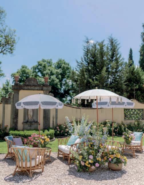 Top left, lounges with floral compositionsinshadesof zionifloreali sui toni del rosa, giallo,azzurro e verdepastello nelgiardinodi Villa di Loro a Empoli.Foto di Mantino Photography.Inbassoa sinistra, scenografia perla cerimoniaa VillaMangiacane, SanCascianoinValdi Pesa (Firenze).Fotodi FTfotoWedding Photography Quisotto,unritrattodi Silvia Slitti a VillaMangiacane,SanCascianoinValdiPesa (Firenze).Fotodi Lara Emme