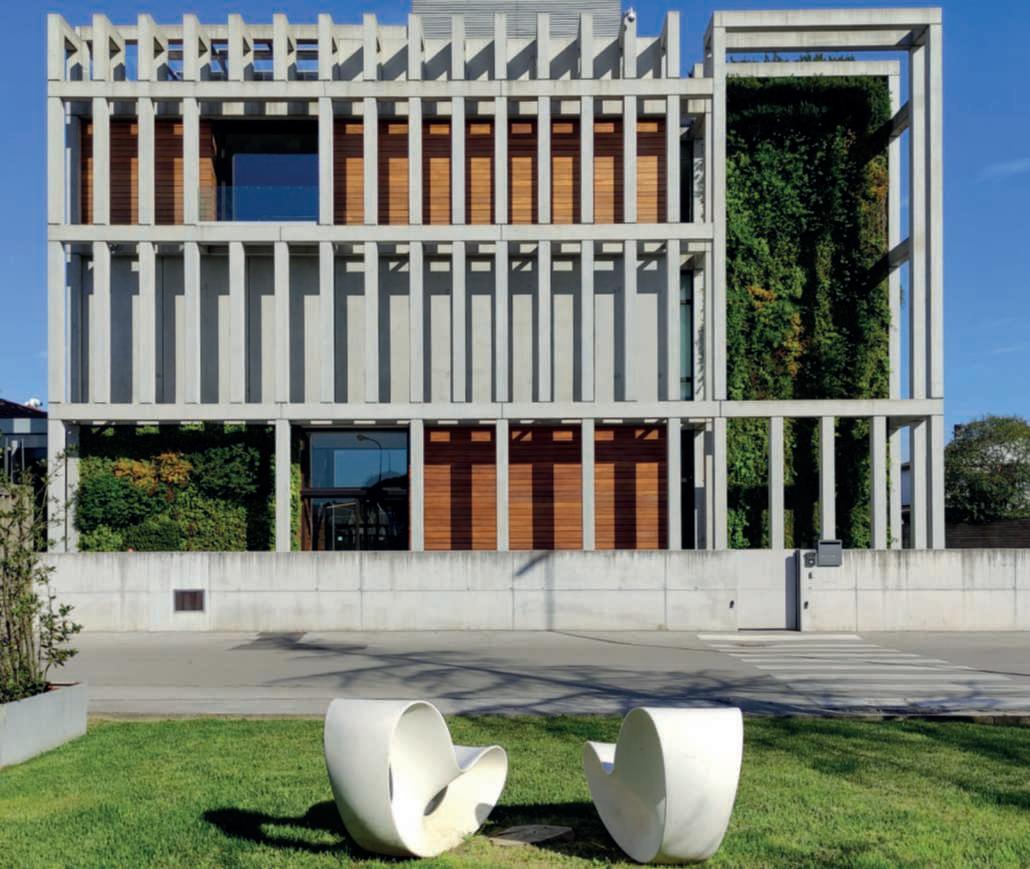 Onthispage,thenew headquarters of Masoni IndustriaConciariaS.p.Ain SantaCrocesull’Arno Ontheleftpage,andonthe followingones,the vertical gardens designed by garden designer Kristian Buziol