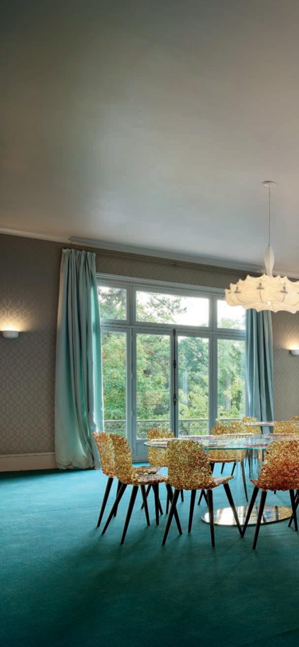 On these pages,thenewproductspresentedby SturmMilano atthe SalonedelMobile Topleft, Agavearmchair by AntonioAricò Ontheright,fromtoptobottom, a detail ofthe Agavearmchair; Crushlamp and trays,by MatteoPellegrino Ontherightpage,aboveleft, Deasideboard and wallpanel by ClaudioBitetti;aboveright, Agavearmchair with Gamba dilegnotable,design Andrea Bertinotti.Bottomcentre, LeBollelamps (Design Matteo Pellegrino).