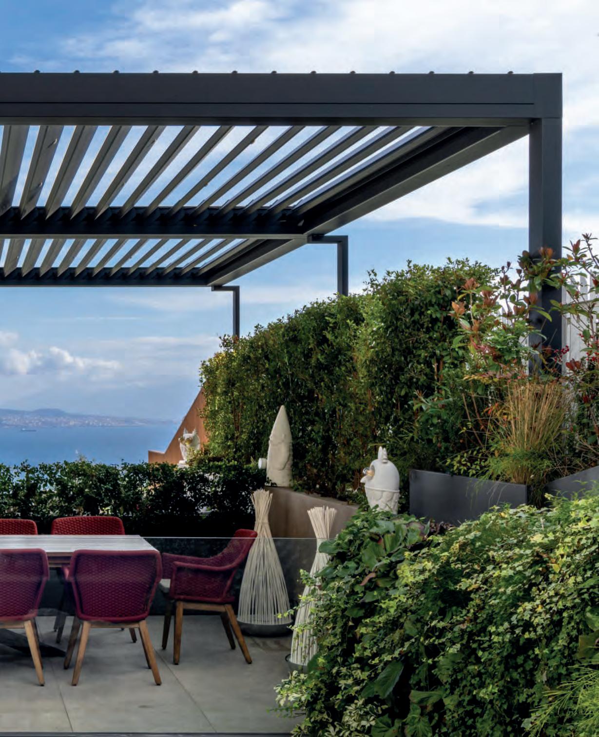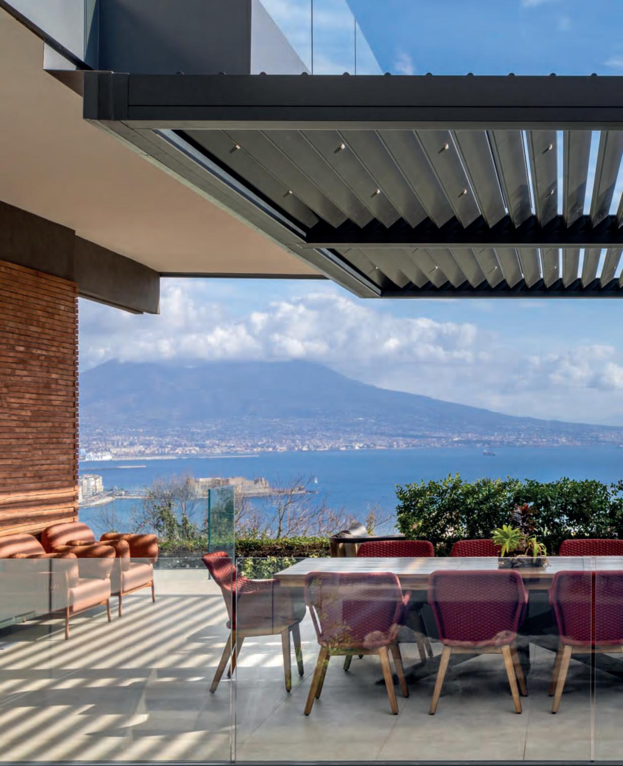 Onthesepages, Labirinto kitchen by SCIC made to a design by architect Baccanico. FranchinoHome Design furniture supply. Wine cellar madeof Patagonia Quartzite designedbyarchitect Baccanico, a Franchino Home Designrealization. Belowleft,ontheterrace Rafaeltable and Kiltarmchairs by Ethimo