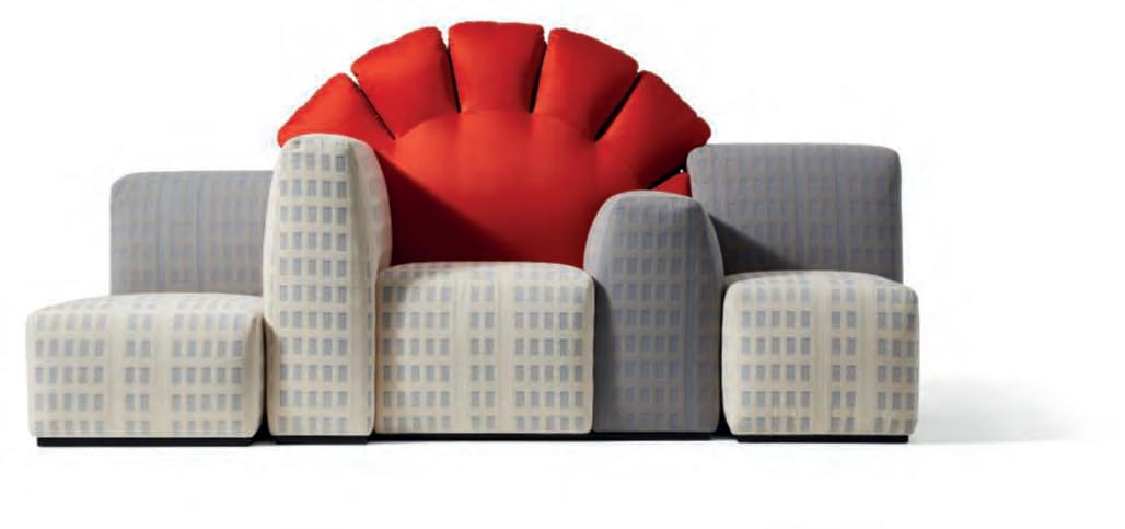 Inquestapagina,quisopra, GaetanoPesce.Fotodi Mark O’Flaherty (courtesy Meritalia). Inalto,il sofàTramonto a New York,Cassina. Fotodi Luca Merli.