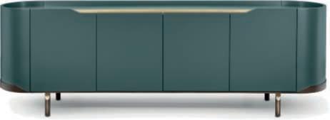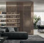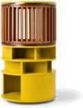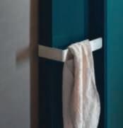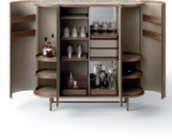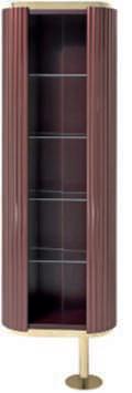 DisegnatodaAlessandro LaSpada, Archimede è una colonnagirevoleperlasala dabagno. La strutturain legno con fianchi curvi è decorata con strisce ‘canneté’scolpite abassorilievo.