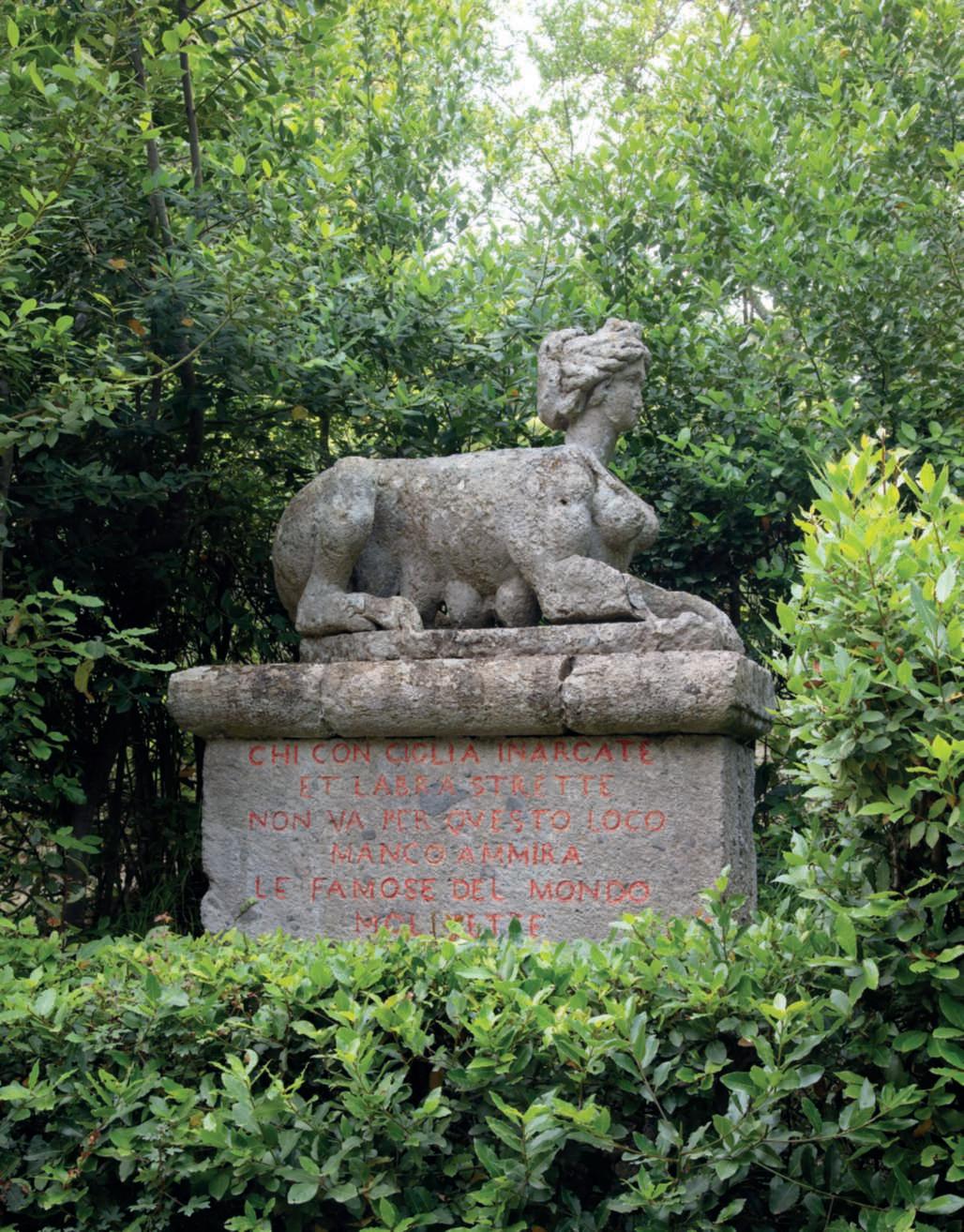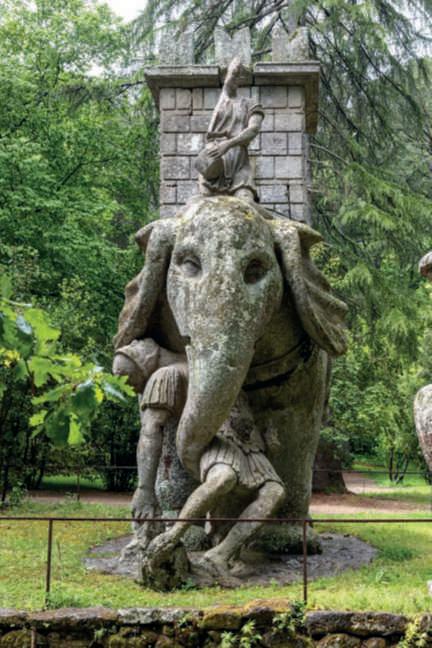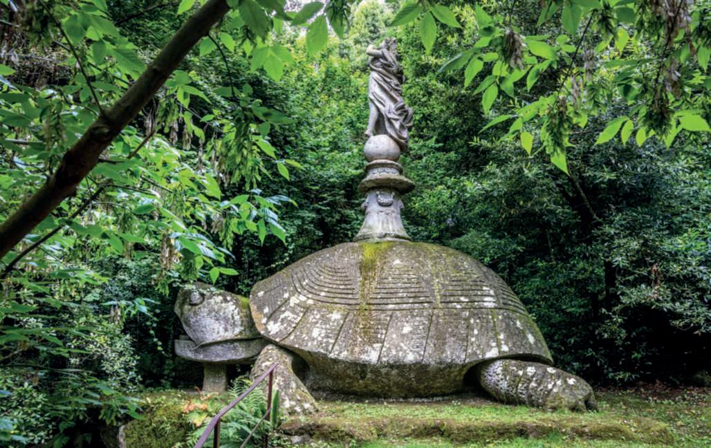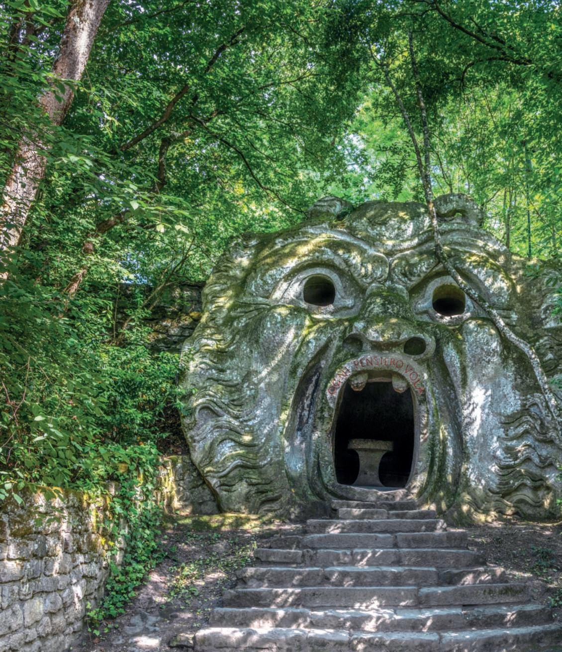 Lastoriadiungiardinoèunanarrazionecostruitasulla basedidatidifattoeancheplasmatadaideologieecircostanzestorichemutevolinelcorsodeltempo.Sottoquesto aspettoilSacroBoscodiBomarzo,unparcoincantatonellacampagnadellaTuscia,apochichilometridaViterboe alle falde dei monti Cimini, è un enigma.