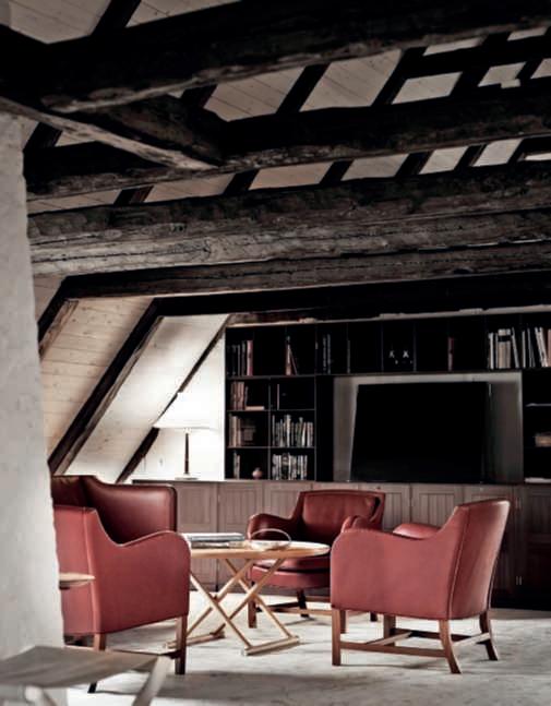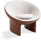 DisegnatadaElisaOssino, lapoltrona Mekong hauna formaavvolgente,linee morbide e struttura monolitica. Rivestimentoinpellecolor terracottaetessutoimbottito bianco non sfoderabile.