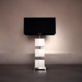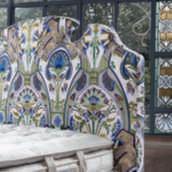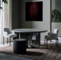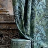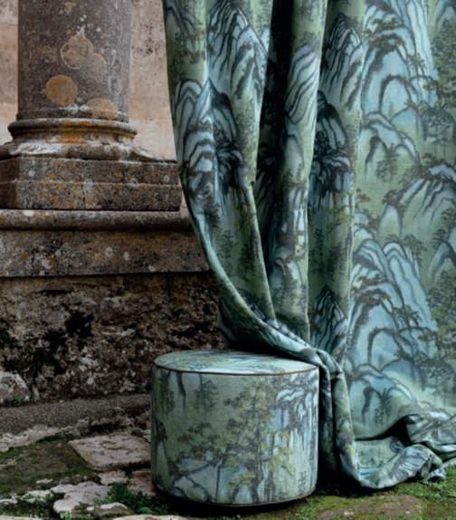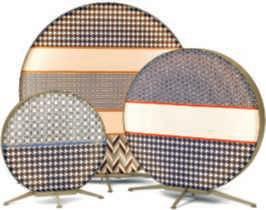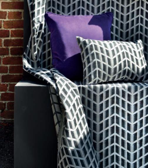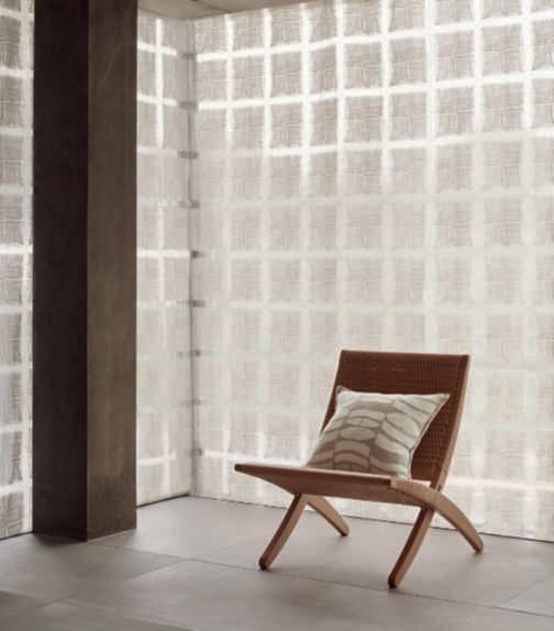 Nappe, designMarco Zito, riprendono gli elementi decorativi dei tendaggi. Disponibile in varie forme e finiture,nell’elegante abbinamento cromatico tra verdesalvia e terracotta.