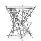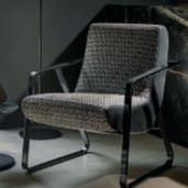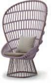 Lapoltrona Solstice è avvoltadaunagrigliainacciaio super-mirrordall’elegante intreccioconbaserivestita in pelle. Cuscini disponibili in tessuto o pelle sfoderabile.